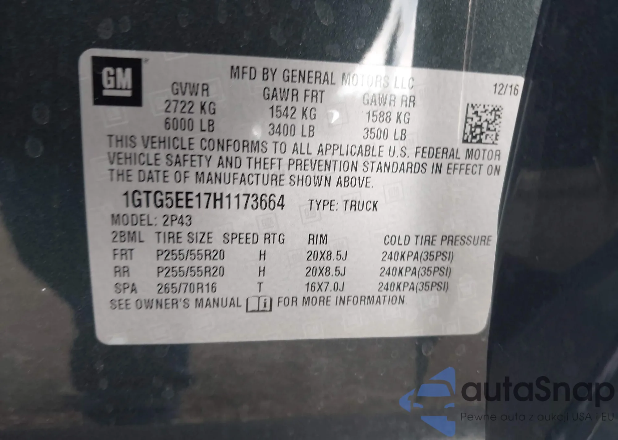 • VIN 1GTG6DE35G1159589
