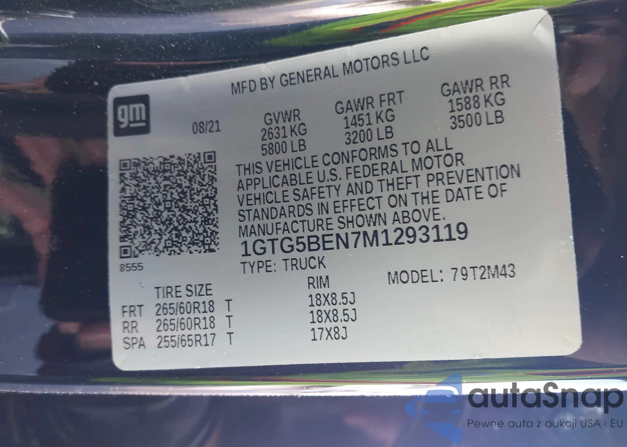 • VIN 1GTG5BEN7M1293119
