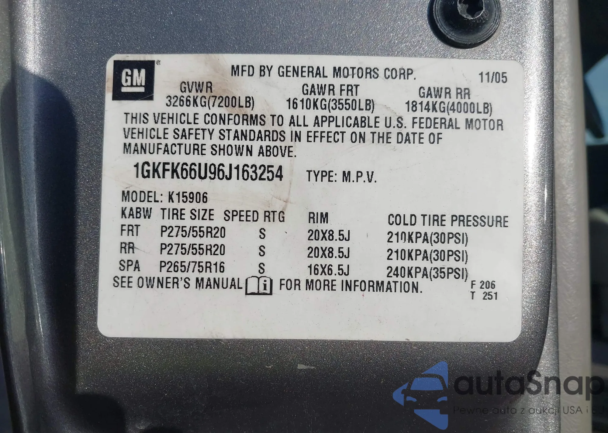 • VIN 1GKFK66U96J163254