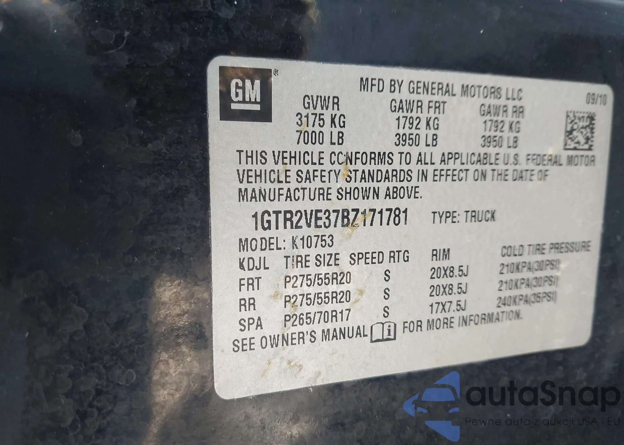 • VIN 3GTRCVE08AG167210