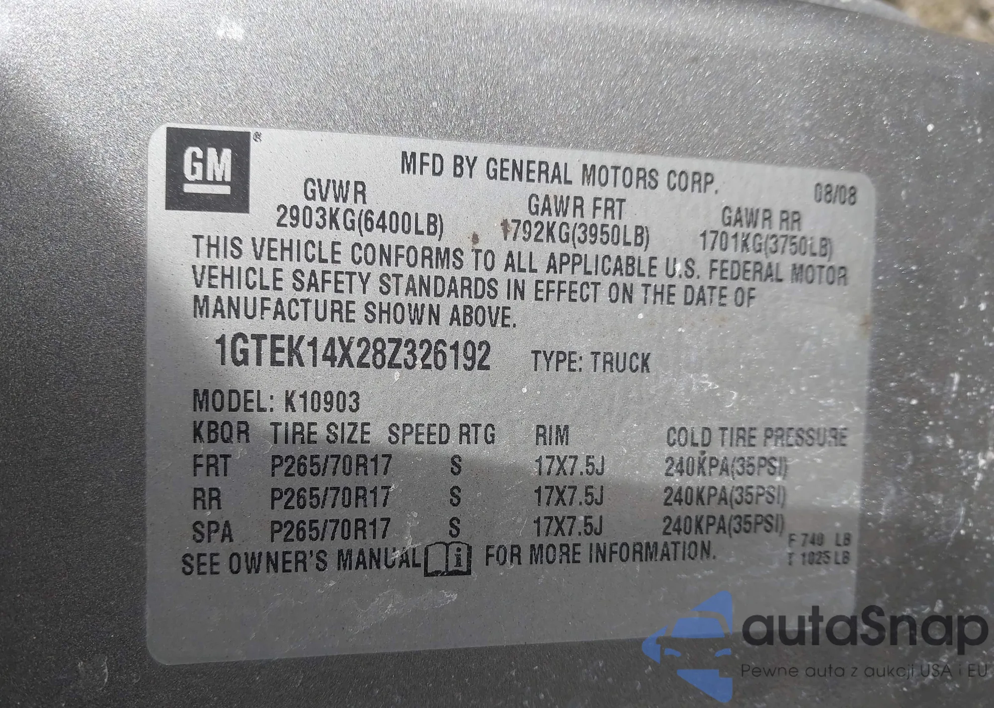 LOT: 89919435 VIN: 1GTHK23K18F127970
