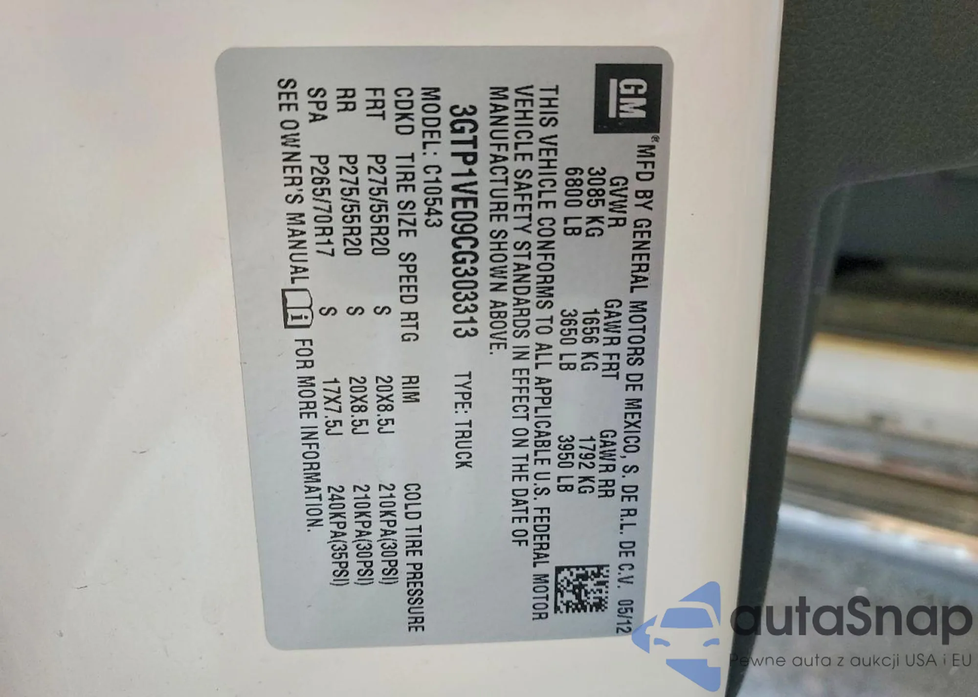 LOT: 73235595 VIN: 3GTP1VE09CG303313