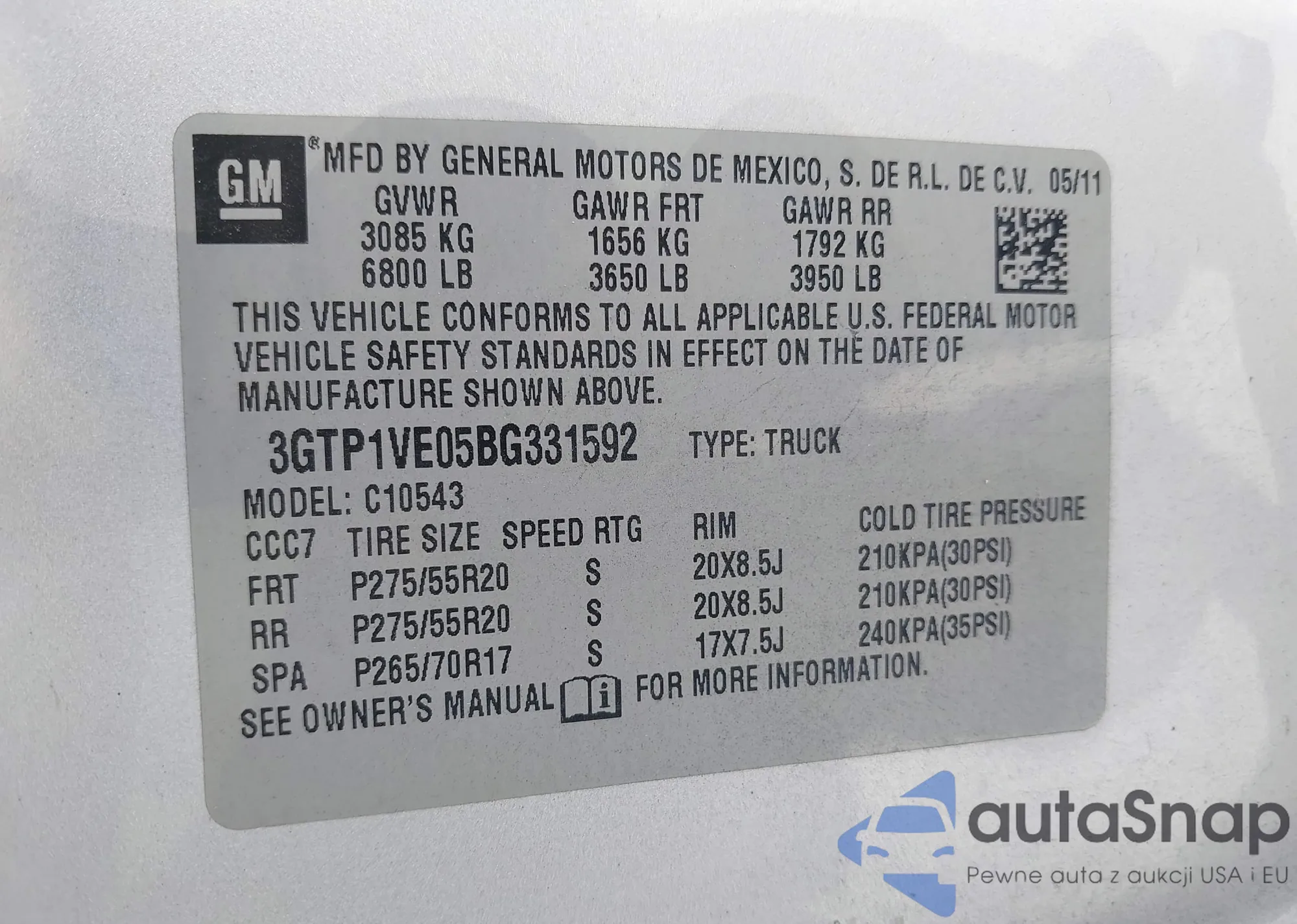 • VIN 3GTP1VE05BG331592