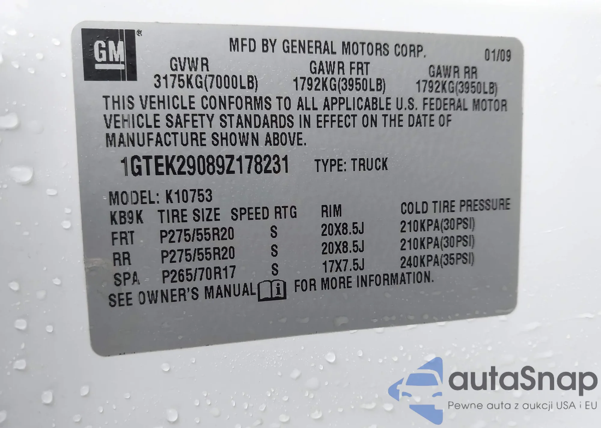 LOT: 43921058 VIN: 1GTEK29089Z178231