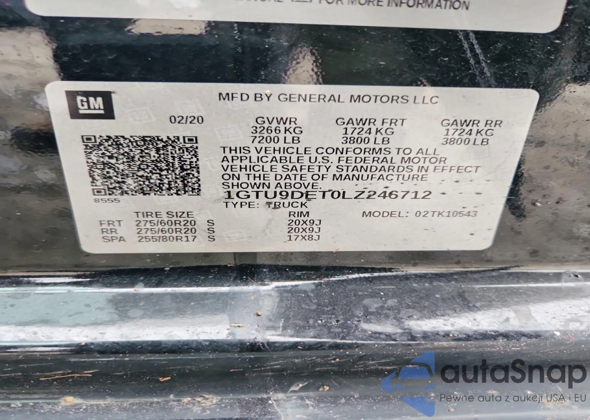 • VIN 1GTU9DET0LZ246712