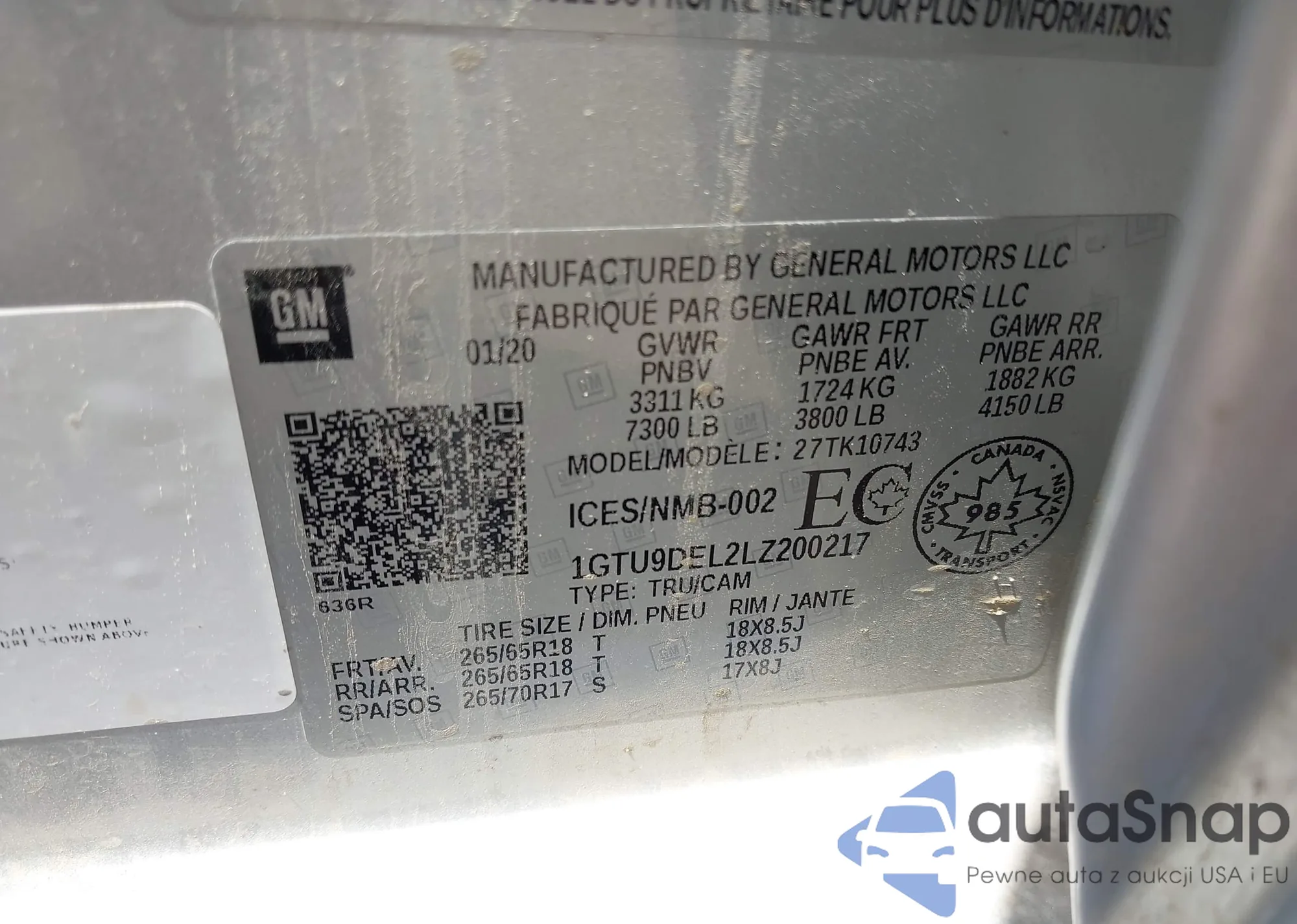 • VIN 1GTU9DEL2LZ200217