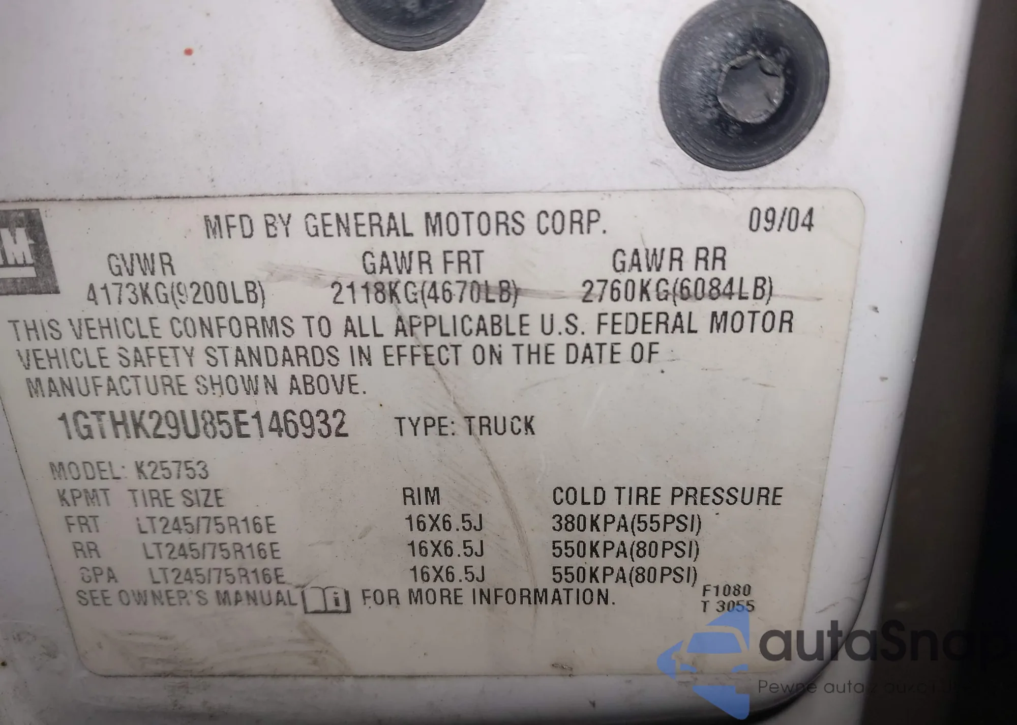• VIN 1GTHK29U85E146932