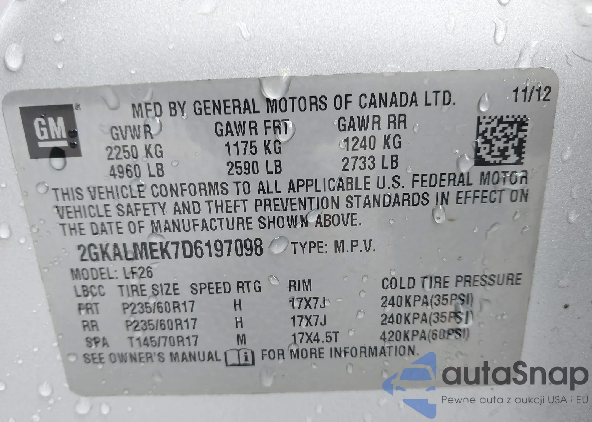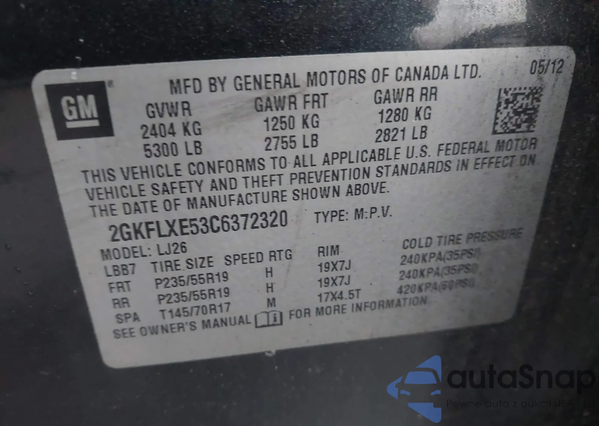 • VIN 2GKFLXE53C6372320