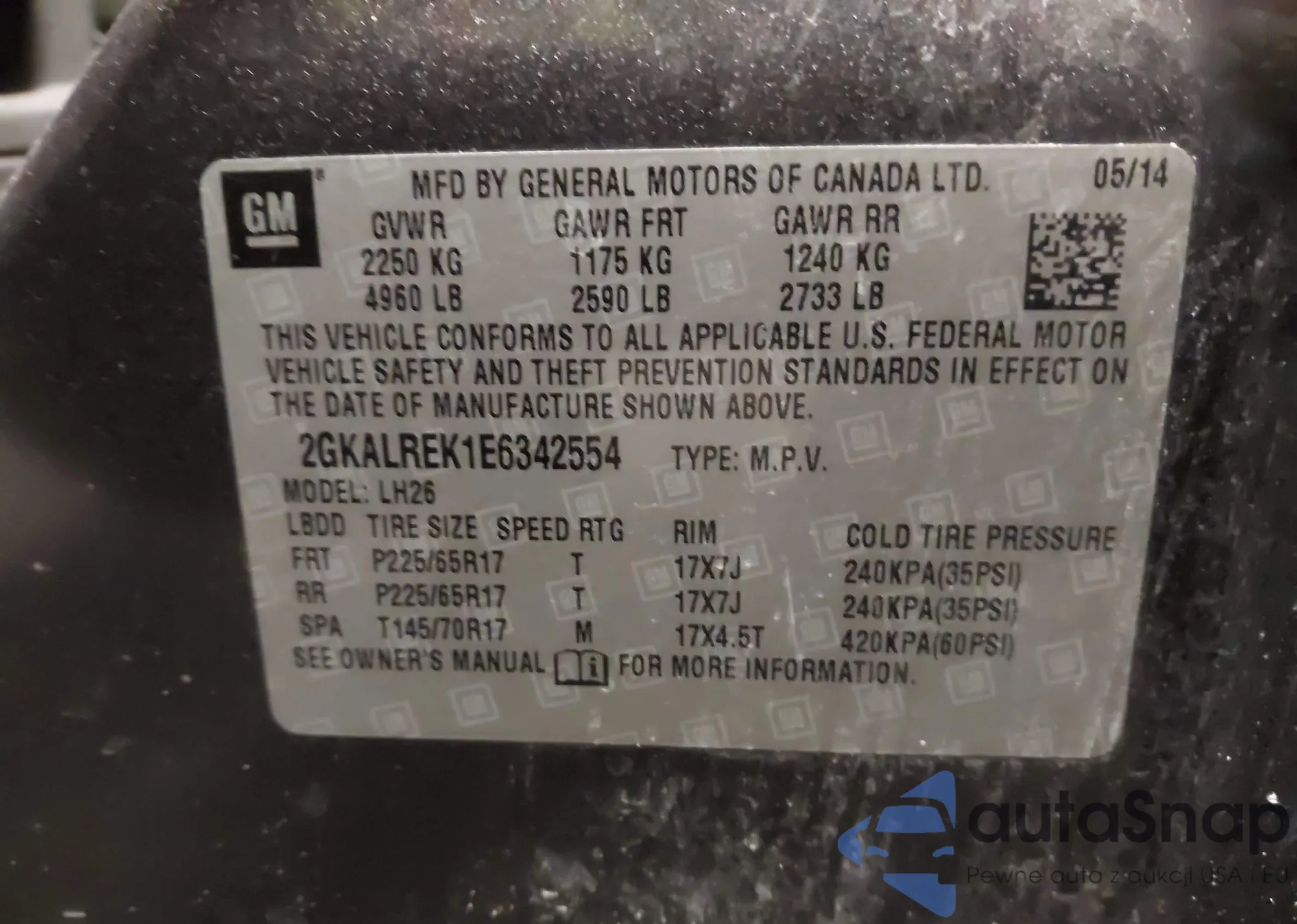 • VIN 2GKALREK1E6342554
