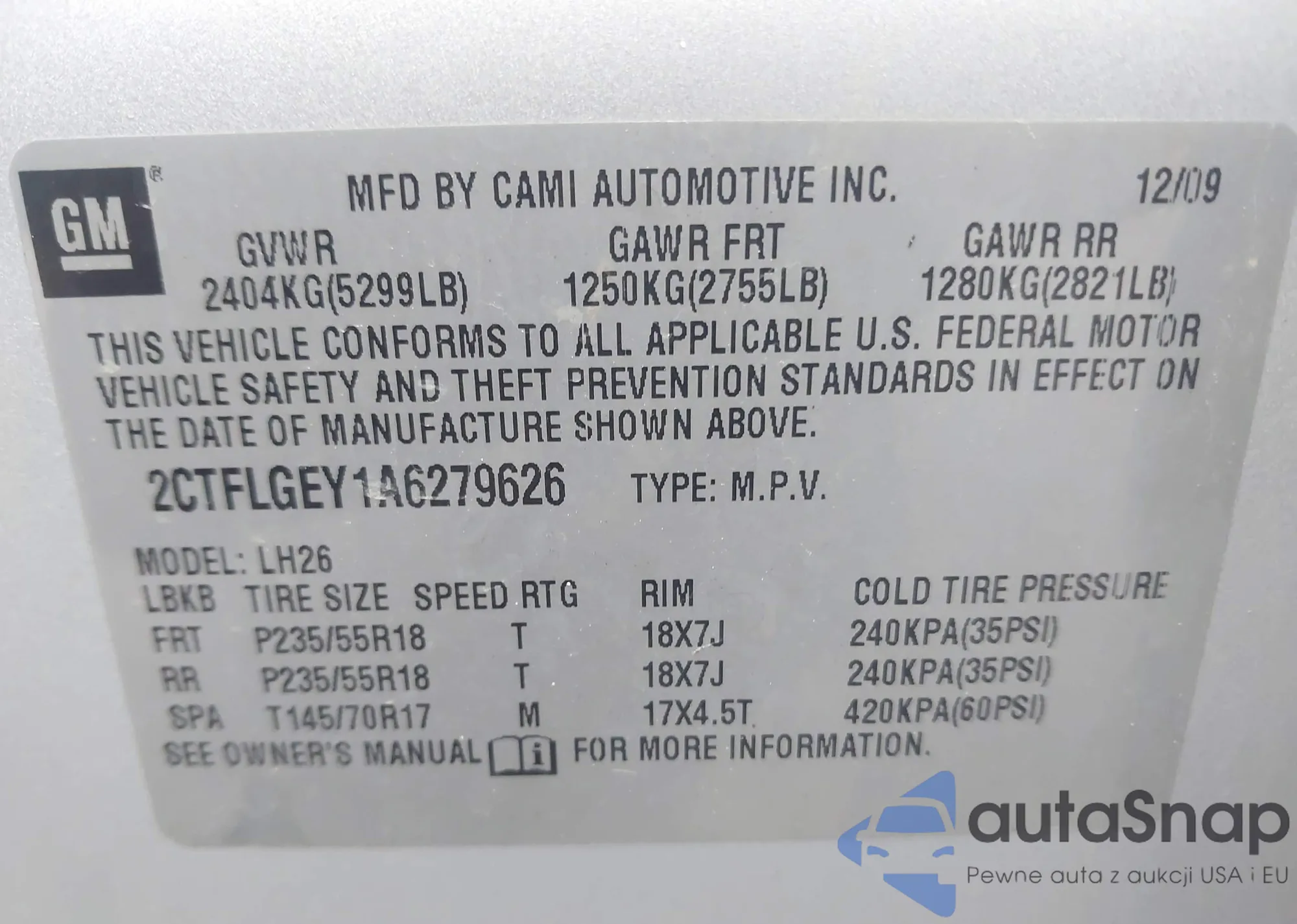 • VIN 2CTFLGEY1A6279626