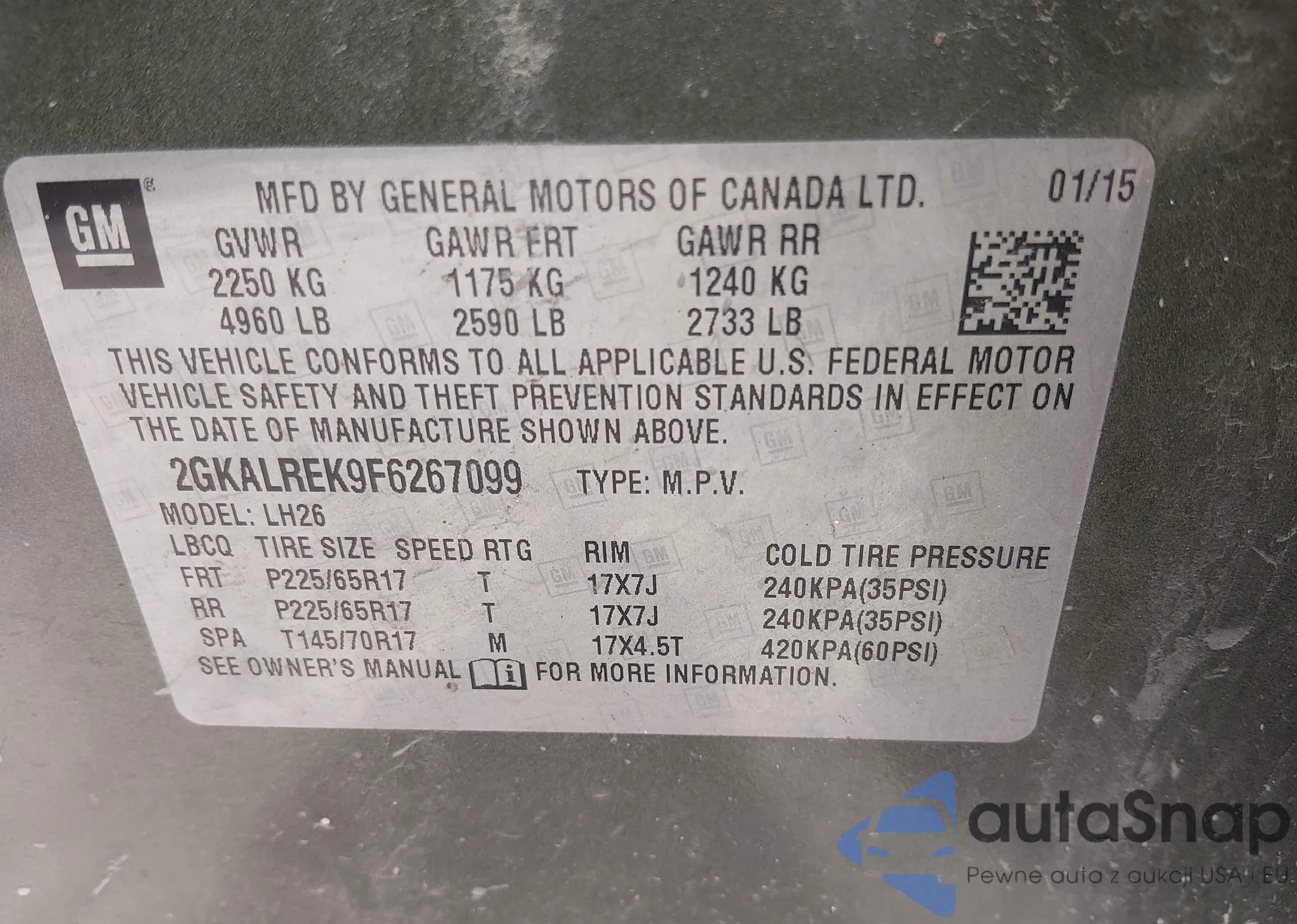 • VIN 2GKALREK9F6267099