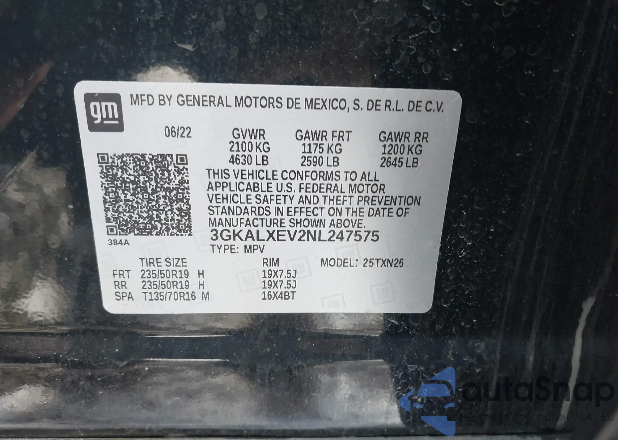 • VIN 3GKALXEV2NL247575
