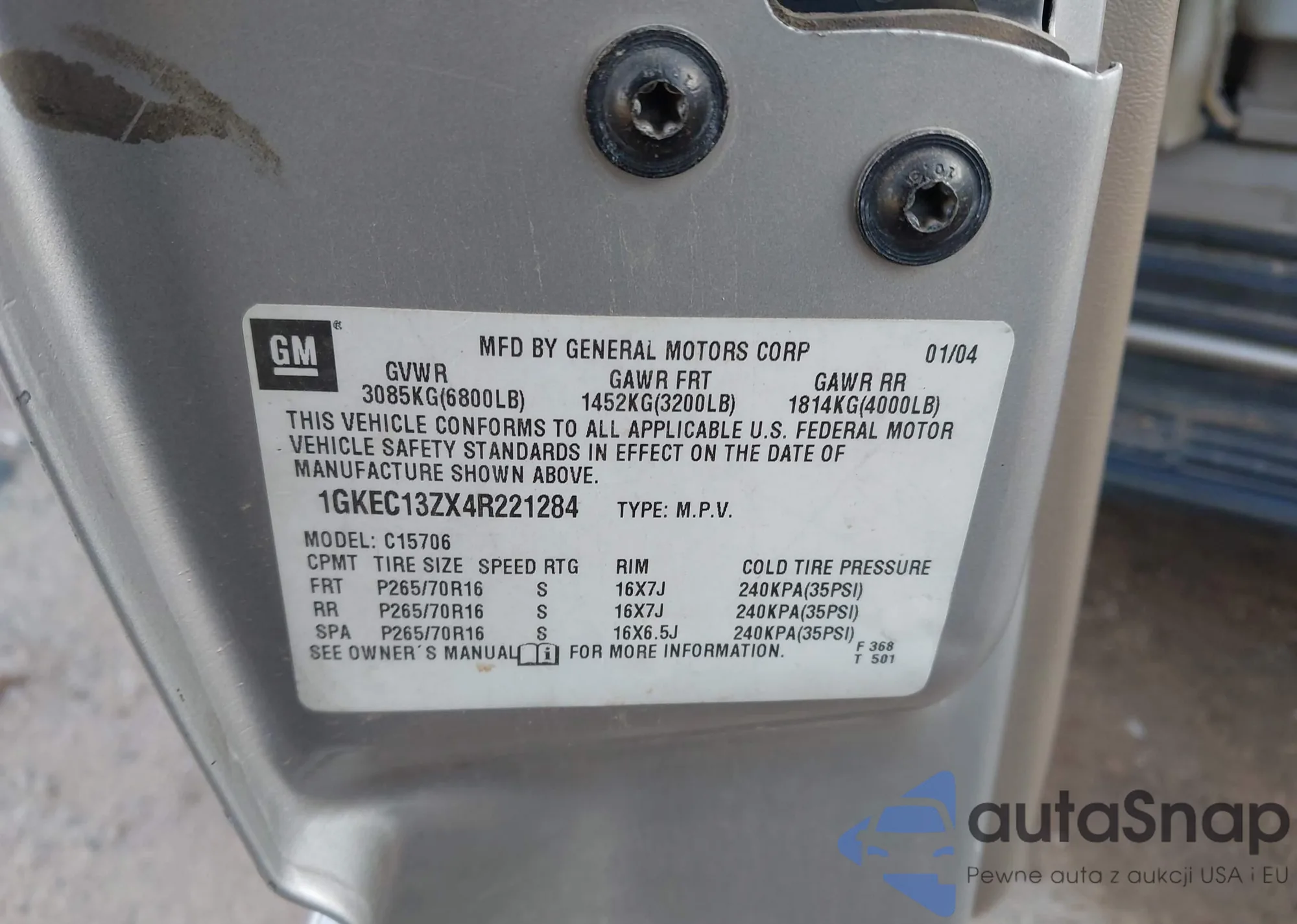LOT: 44268943 VIN: 1GKEK13Z54J142395