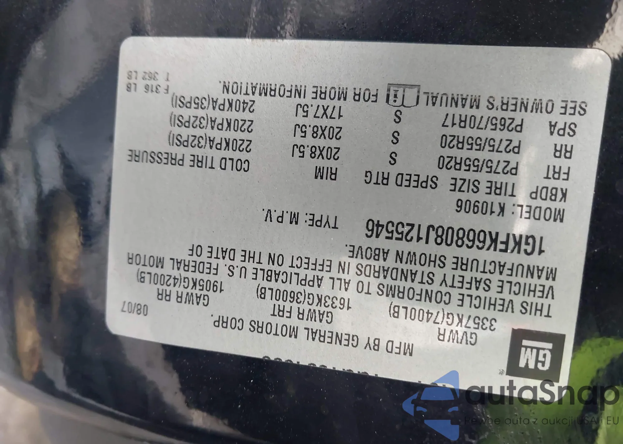 LOT: 44389476 VIN: 1GKFK66808J125546