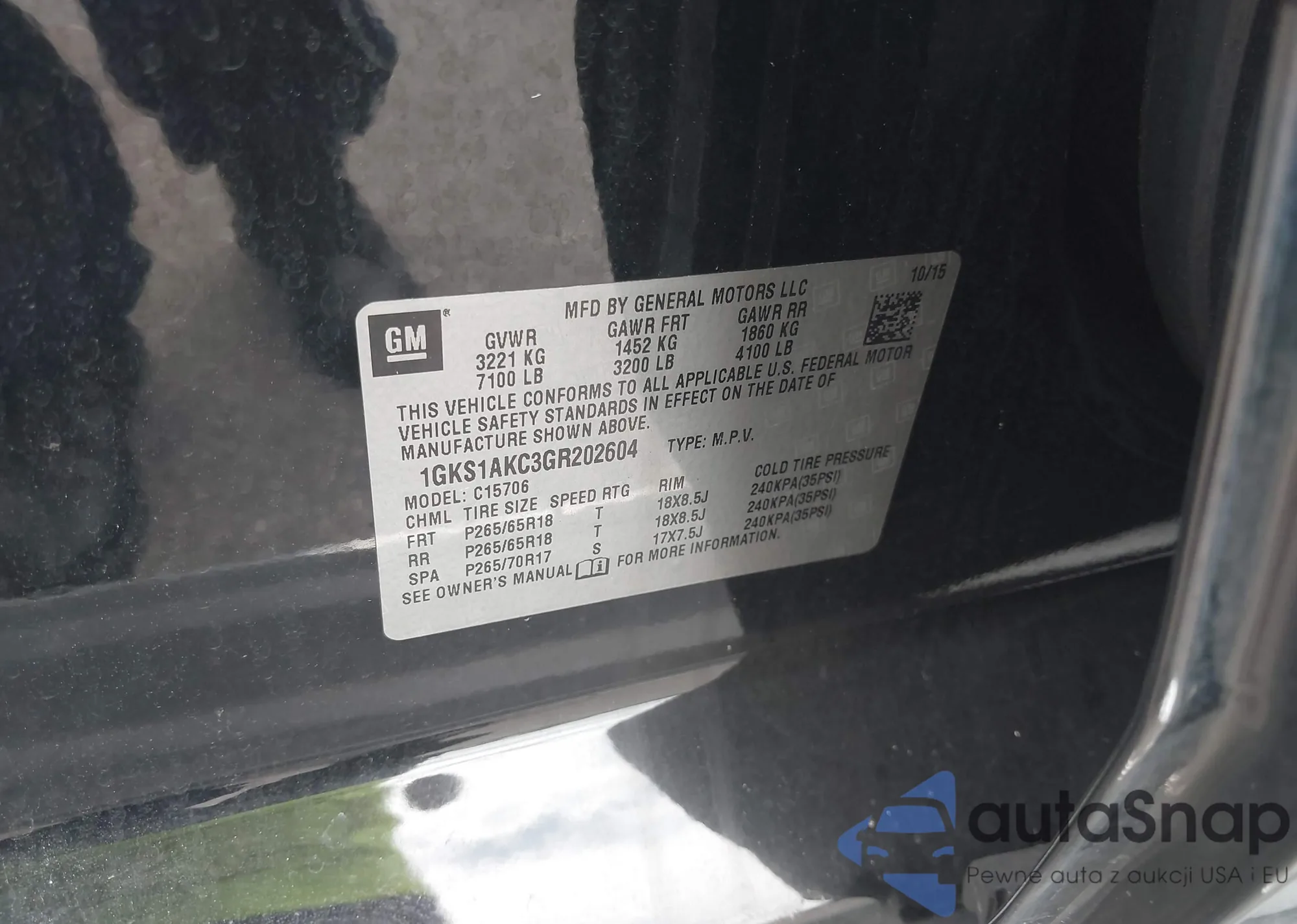 LOT: 43762238 VIN: 1GKS1AKC1FR712934
