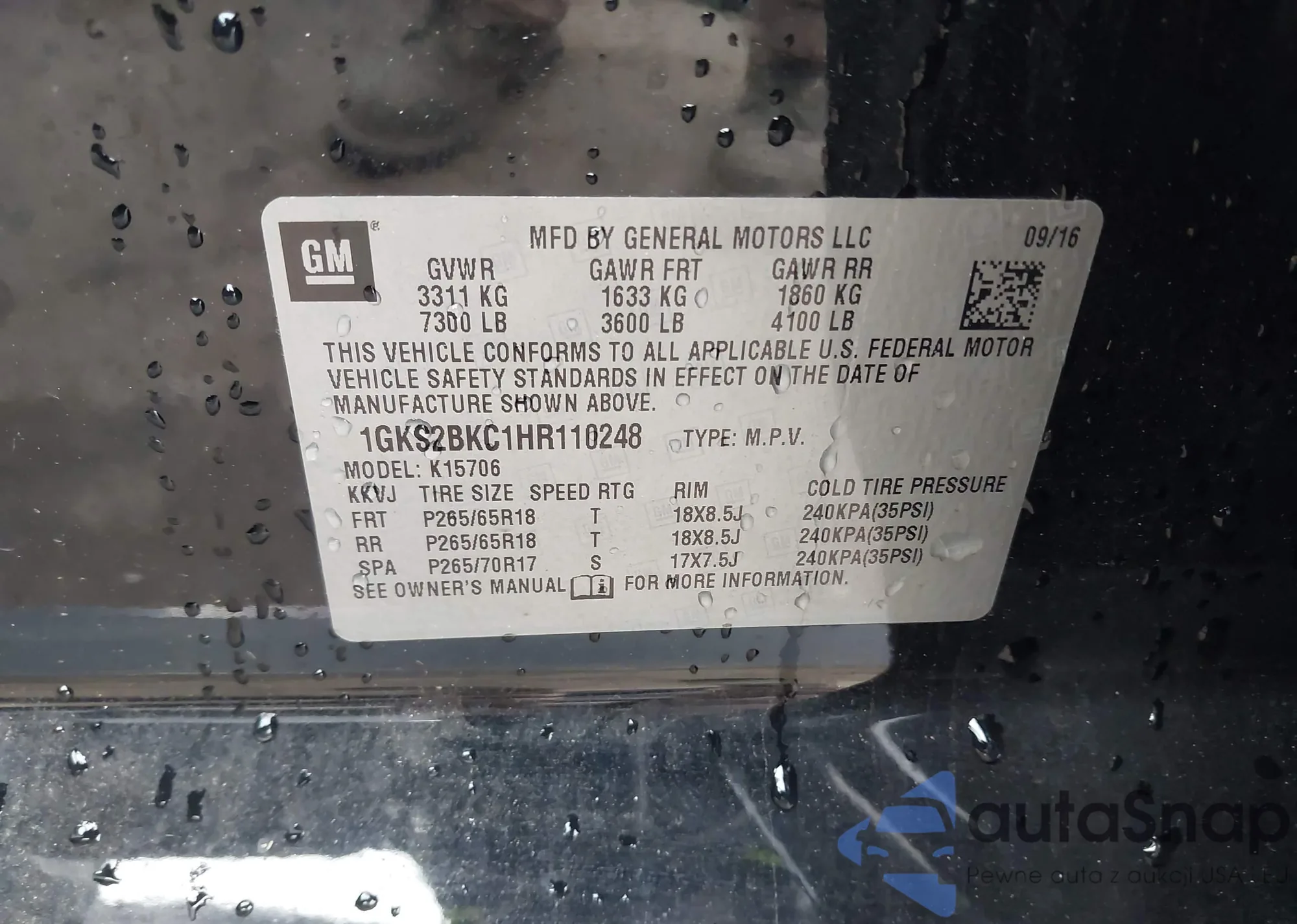 LOT: 36894936 VIN: 1GKS1AKC3GR202604