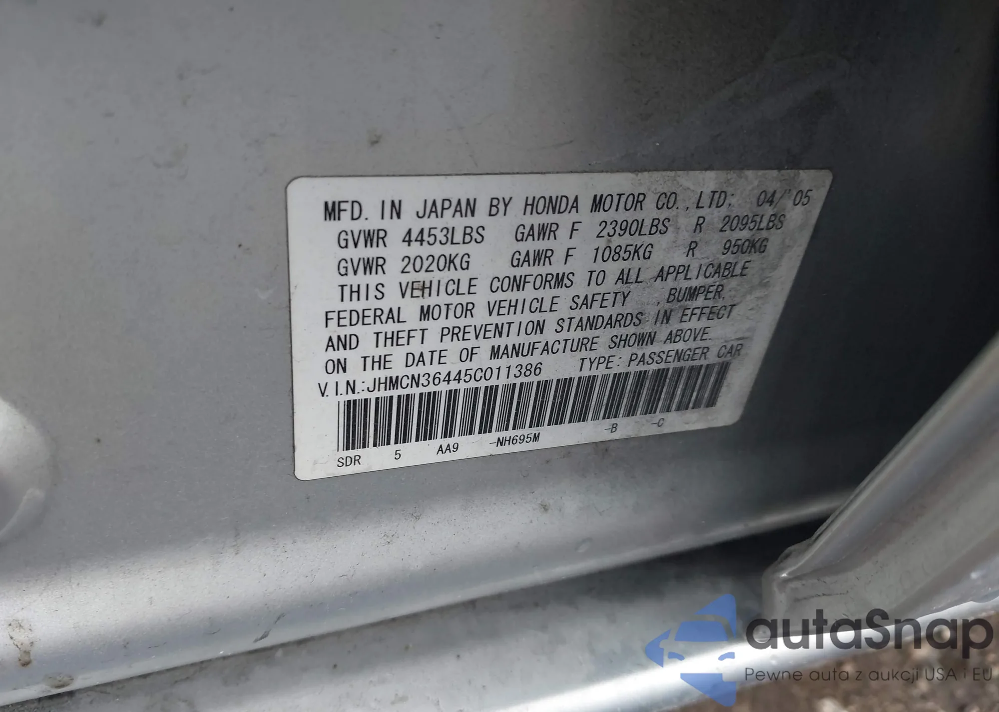 LOT: 44208672 VIN: JHMCN36445C011386