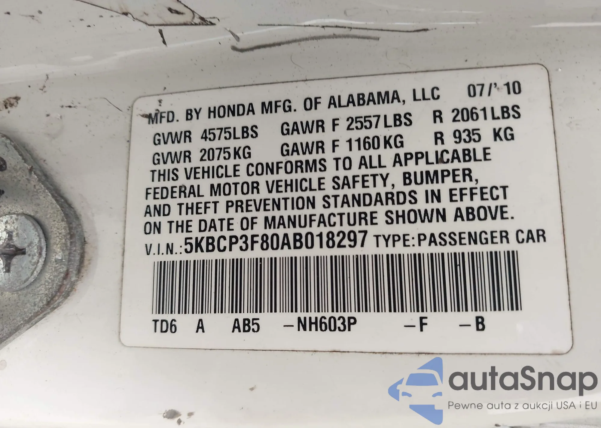 • VIN 5KBCP3F80AB018297
