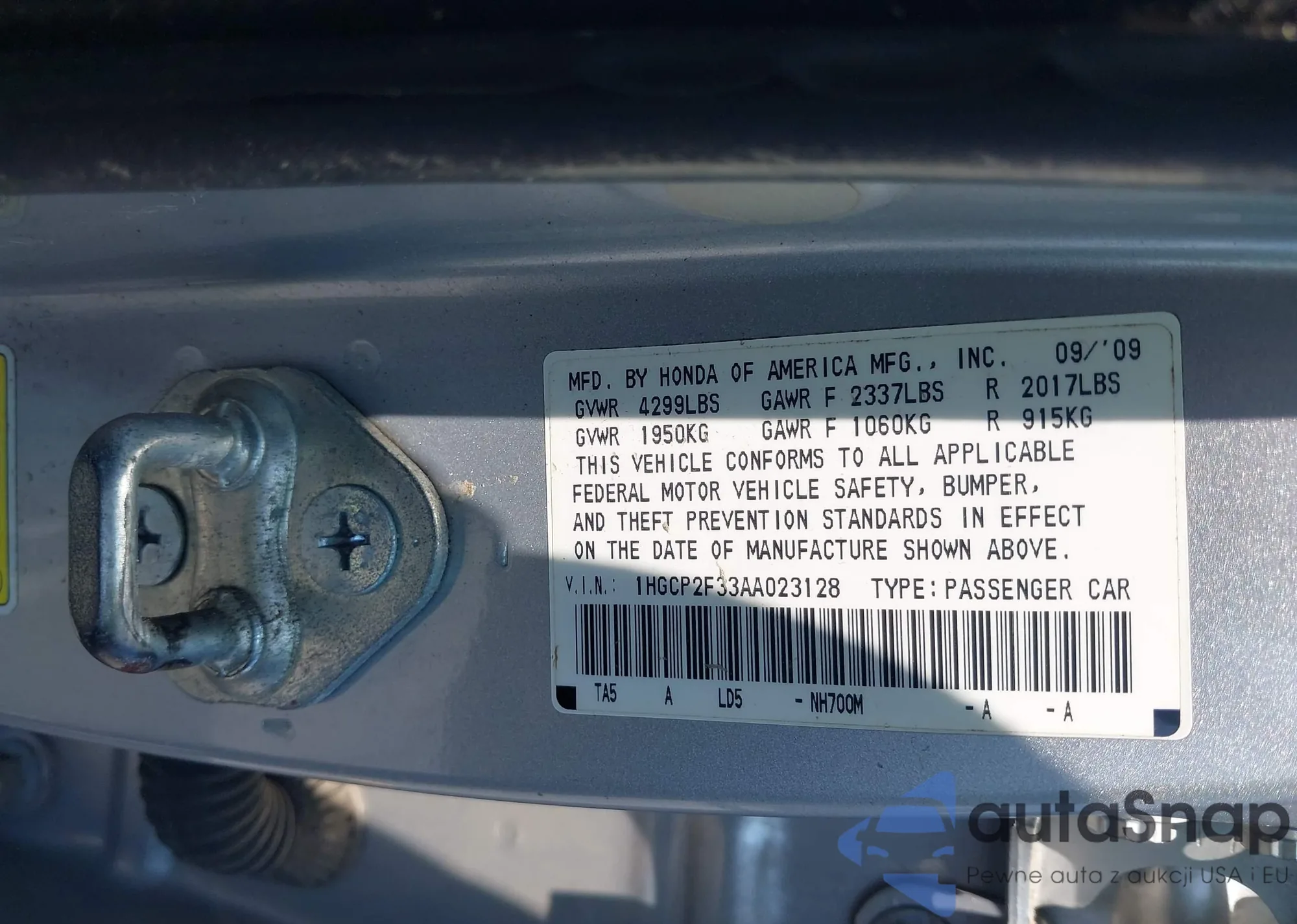 LOT: 43038408 VIN: 1HGCP2F33AA023128