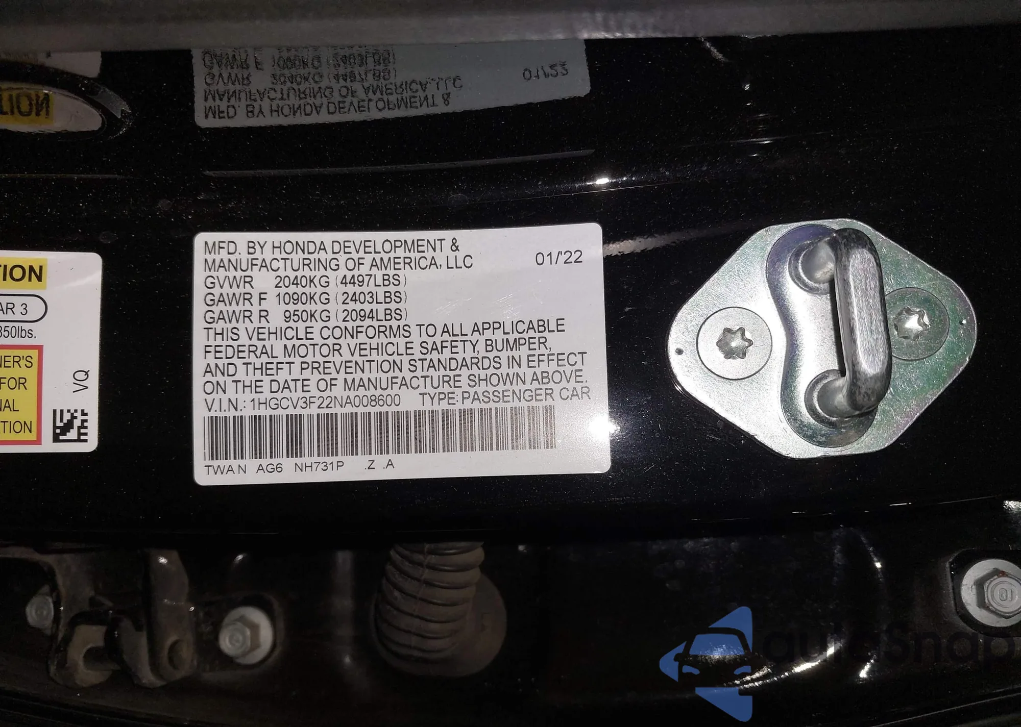 LOT: 43715004 VIN: 1HGCV3F22NA008600
