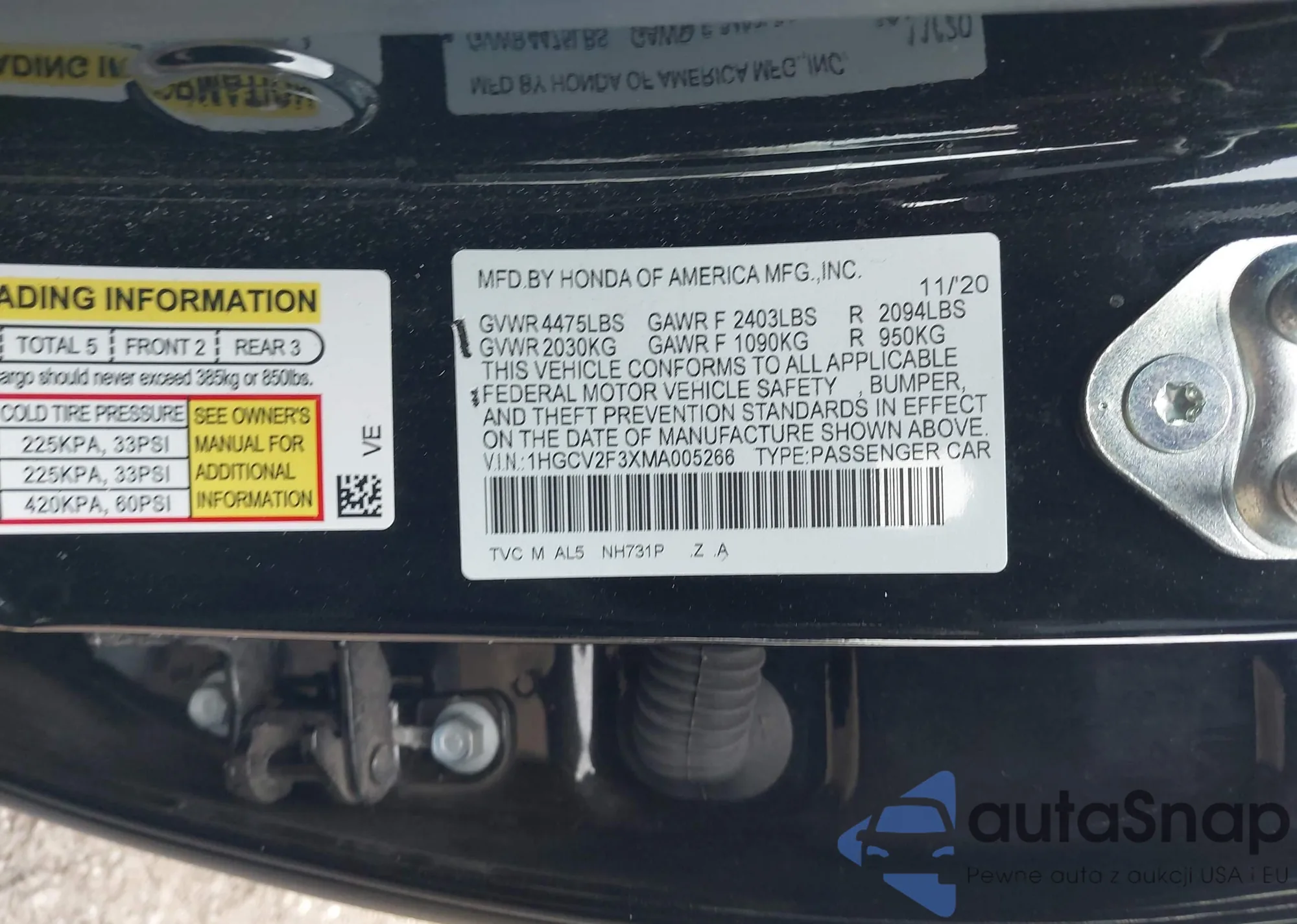 • VIN 1HGCV2F3XMA005266