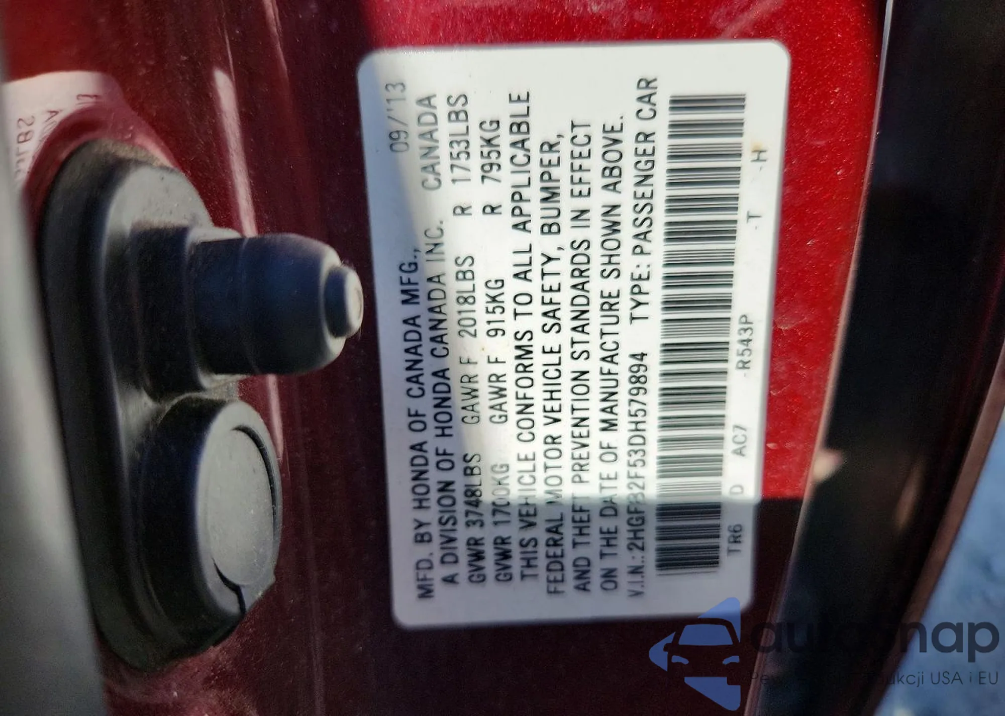 LOT: 79884595 VIN: 2HGFB2F53DH579894