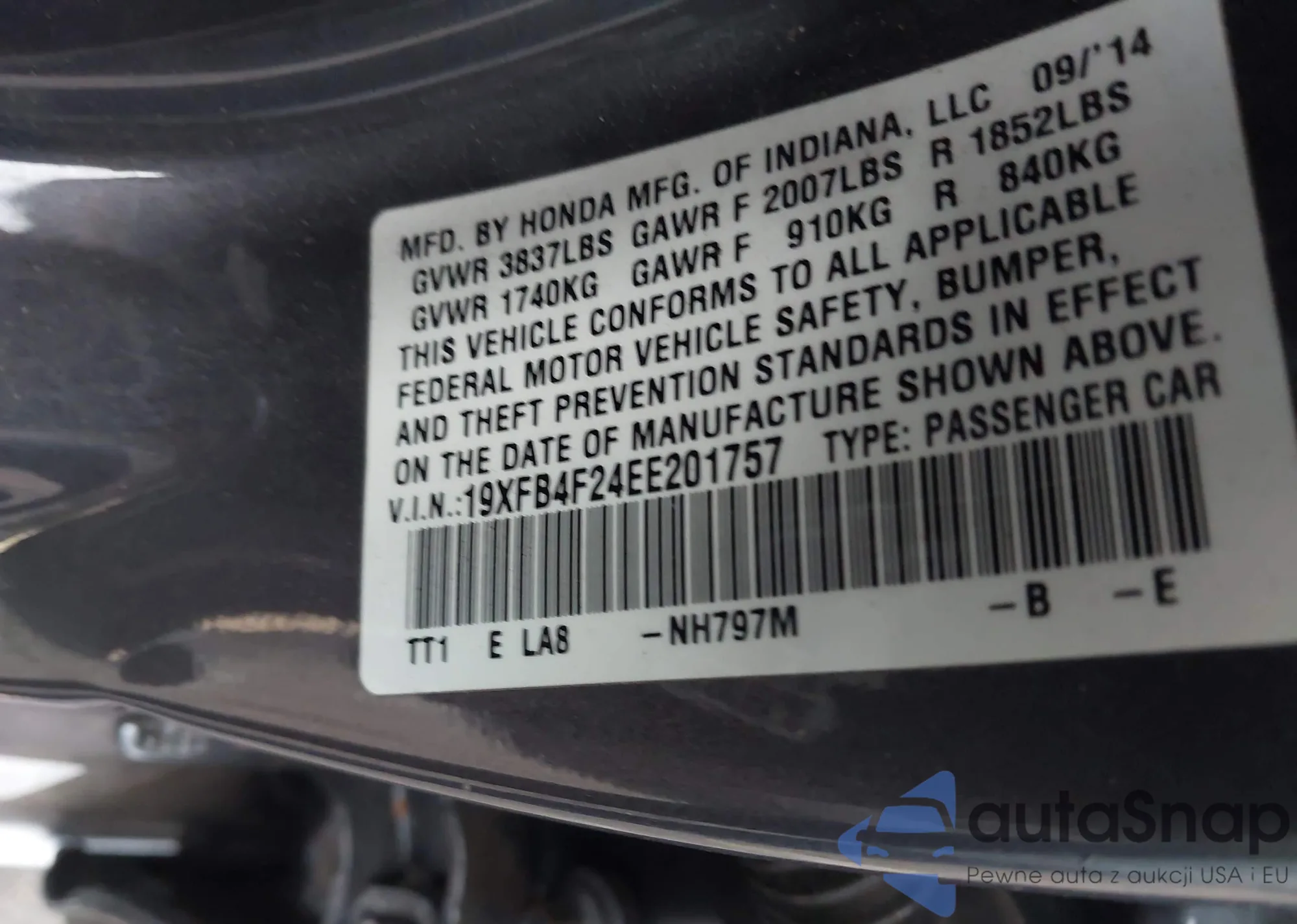 • VIN 19XFB4F24EE201757