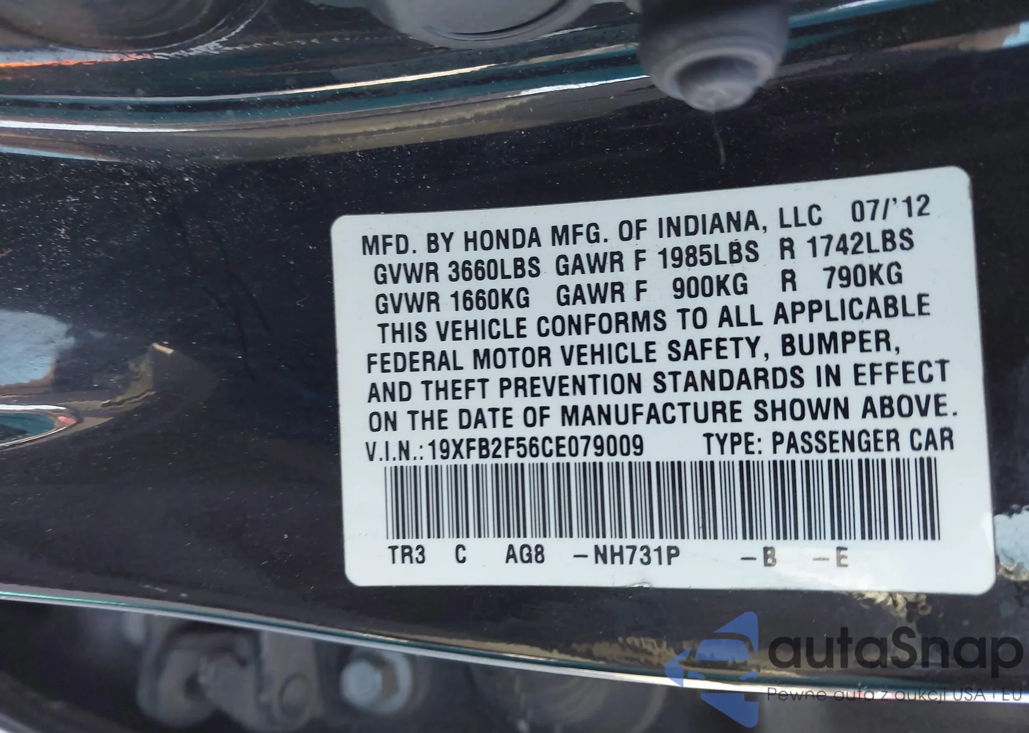 • VIN 19XFB2F56CE079009