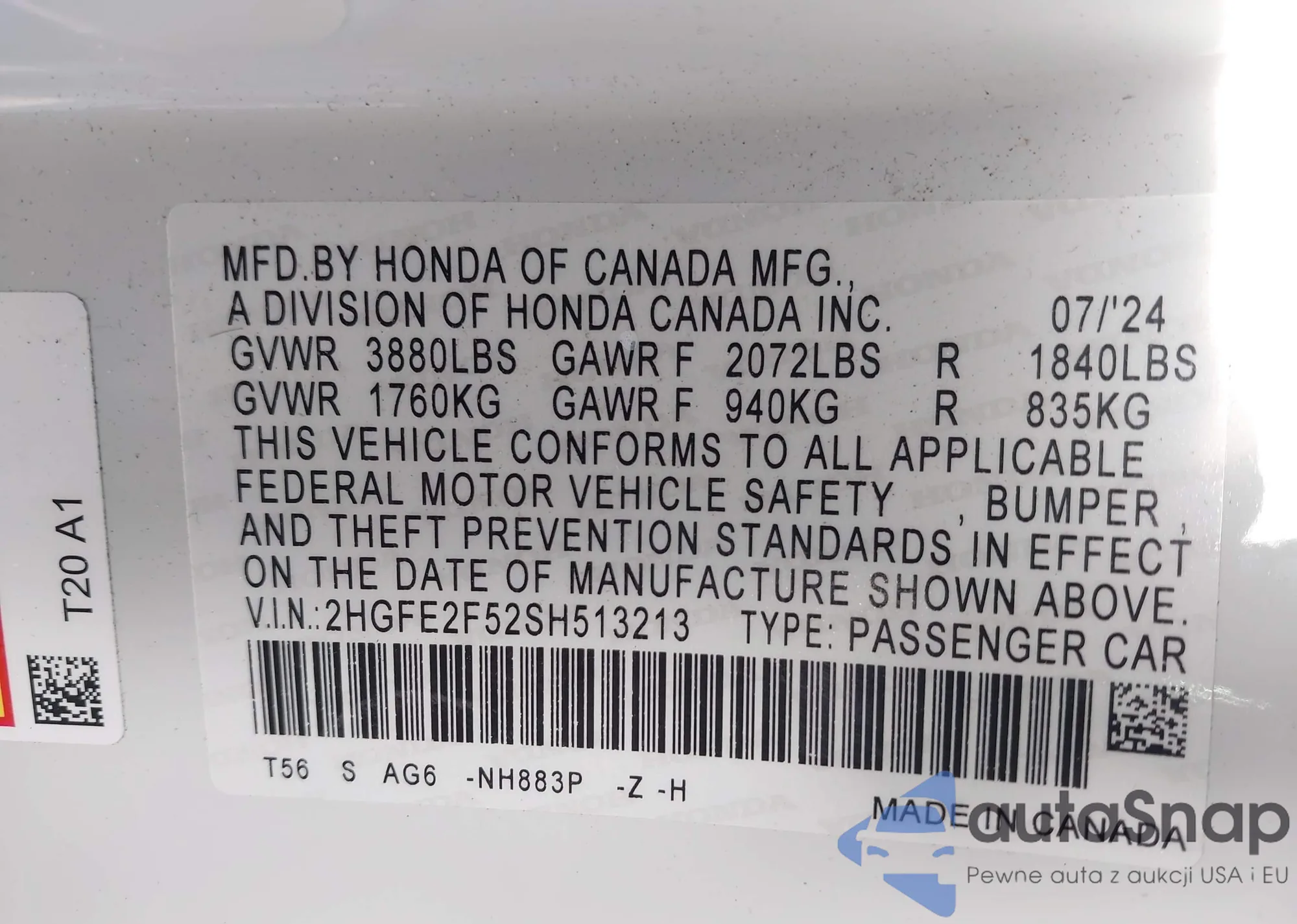 • VIN SHHFK7H57JU223652