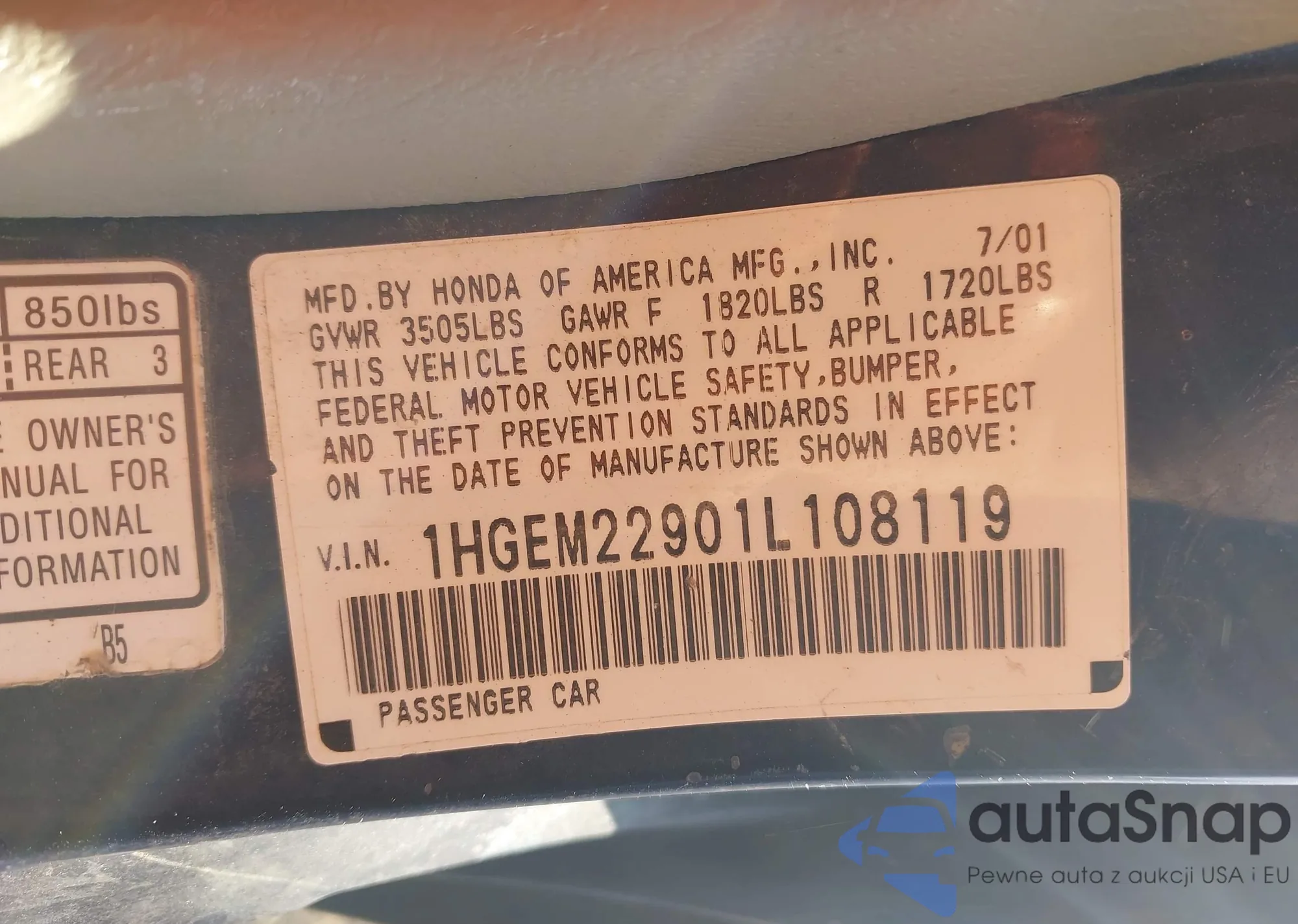• VIN 1HGEM22901L108119