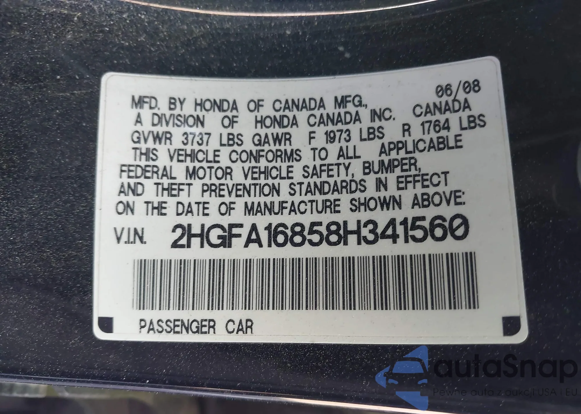 • VIN 2HGFA16858H341560