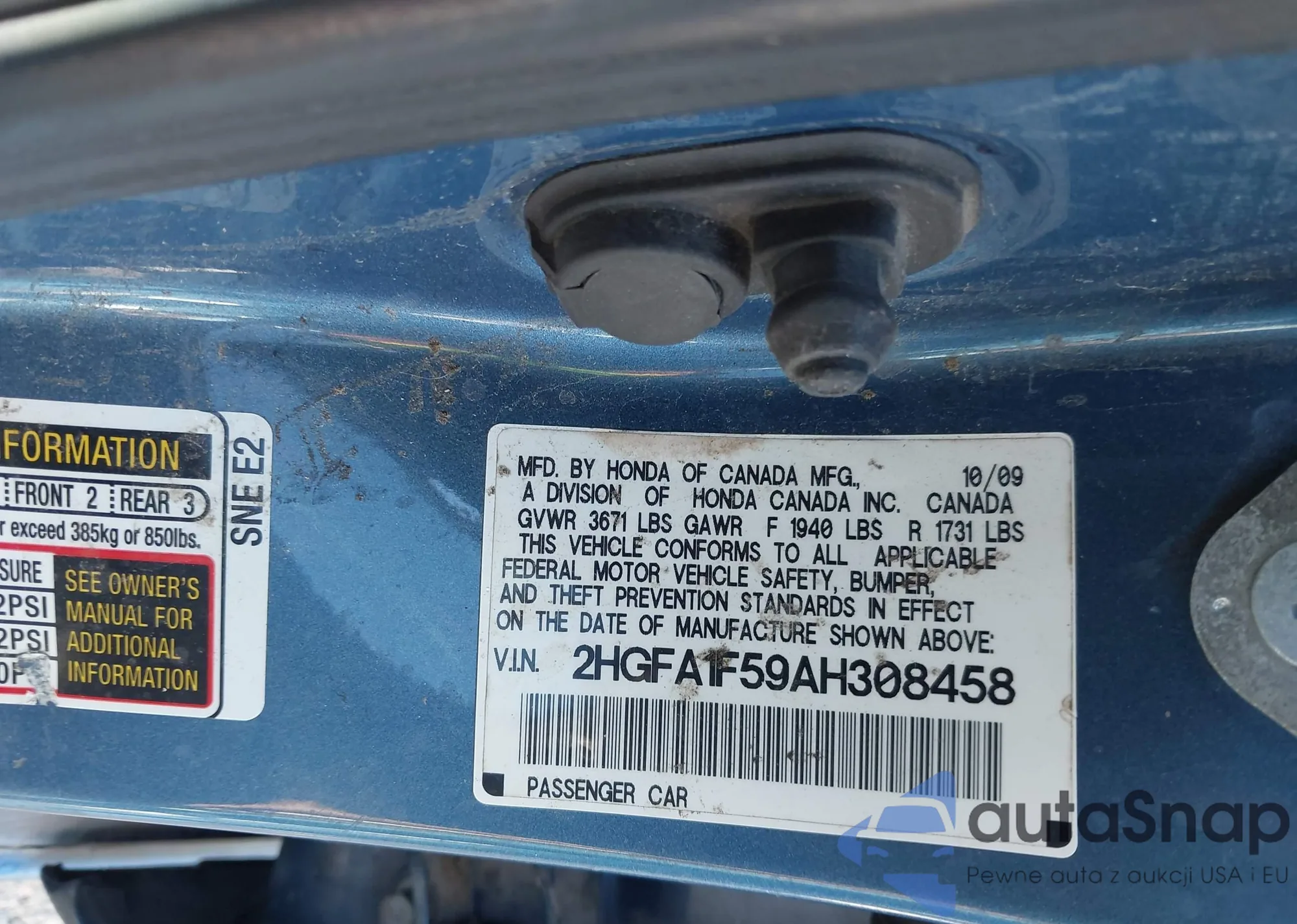 • VIN 2HGFA1F59AH308458
