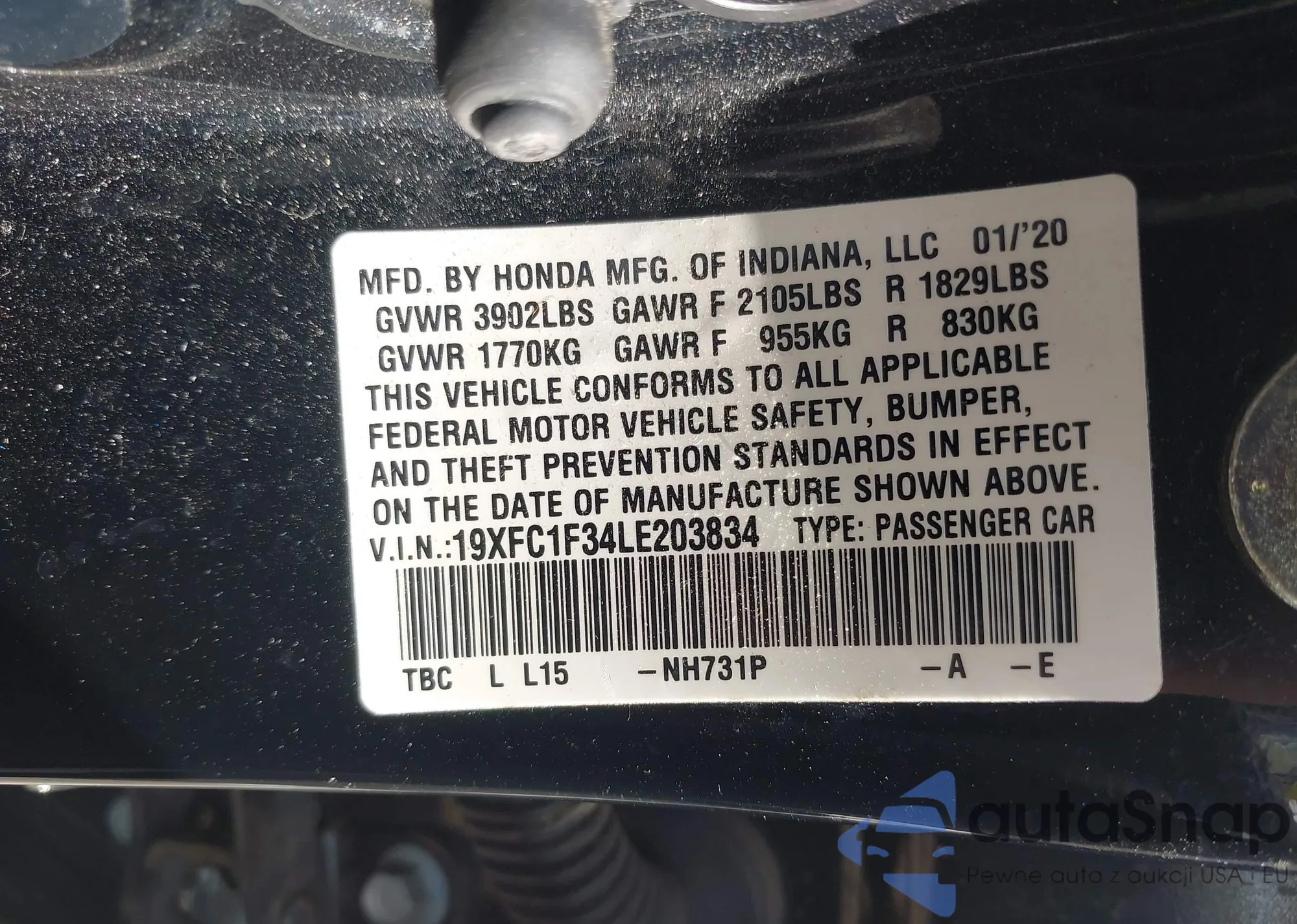 • VIN 19XFC1F34LE203834