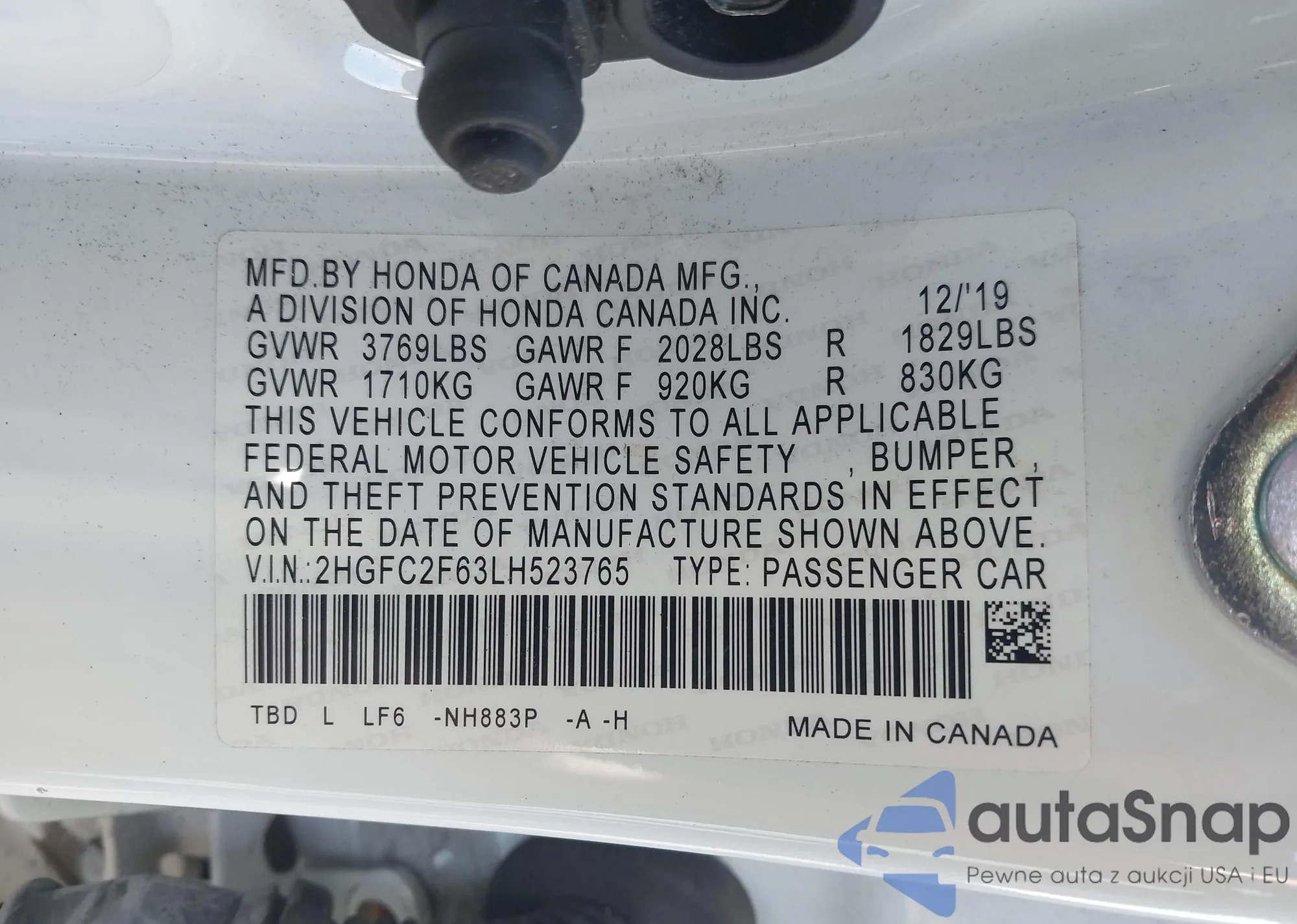 • VIN 2HGFC2F63LH523765