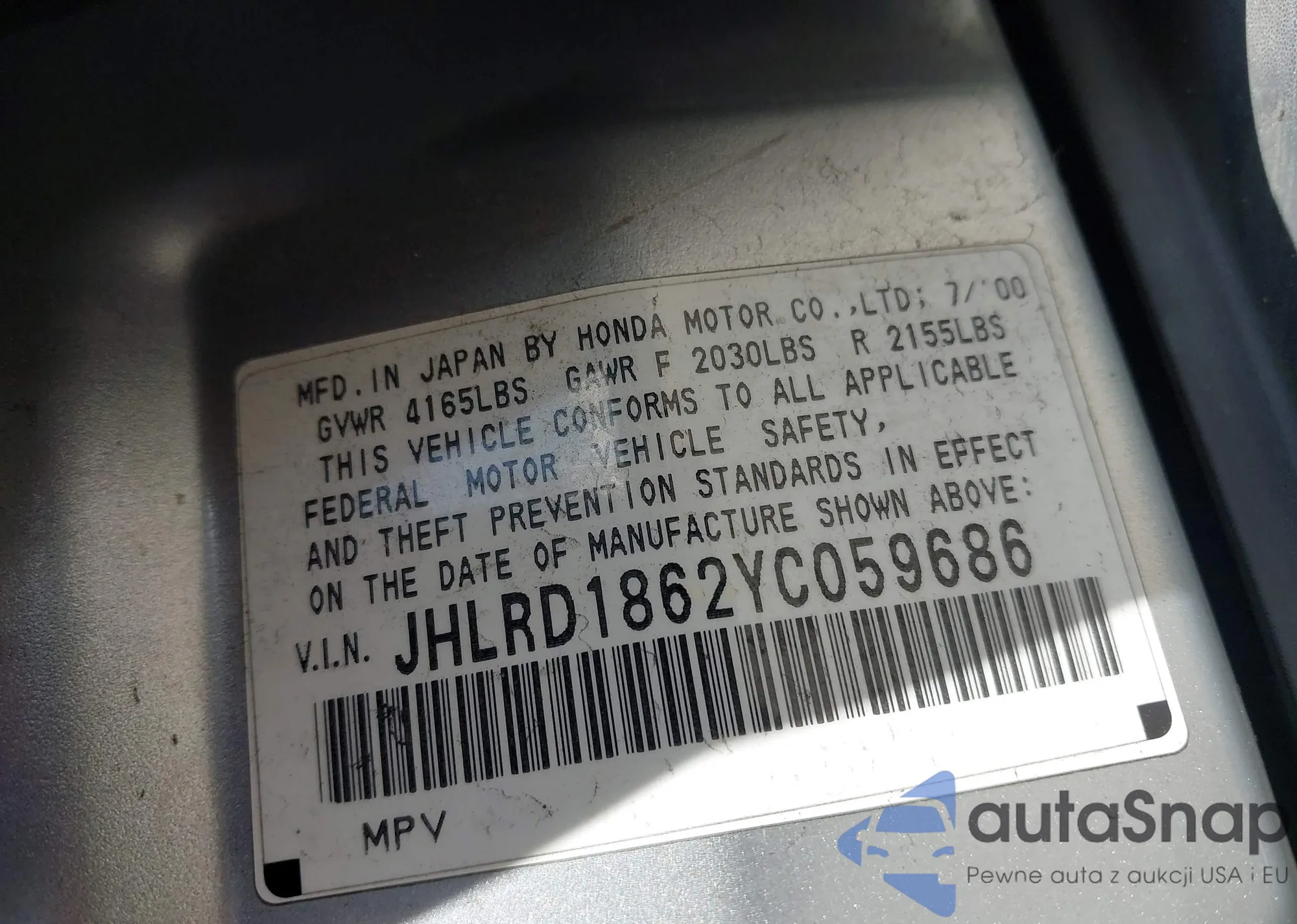 • VIN JHLRD1862YC059686