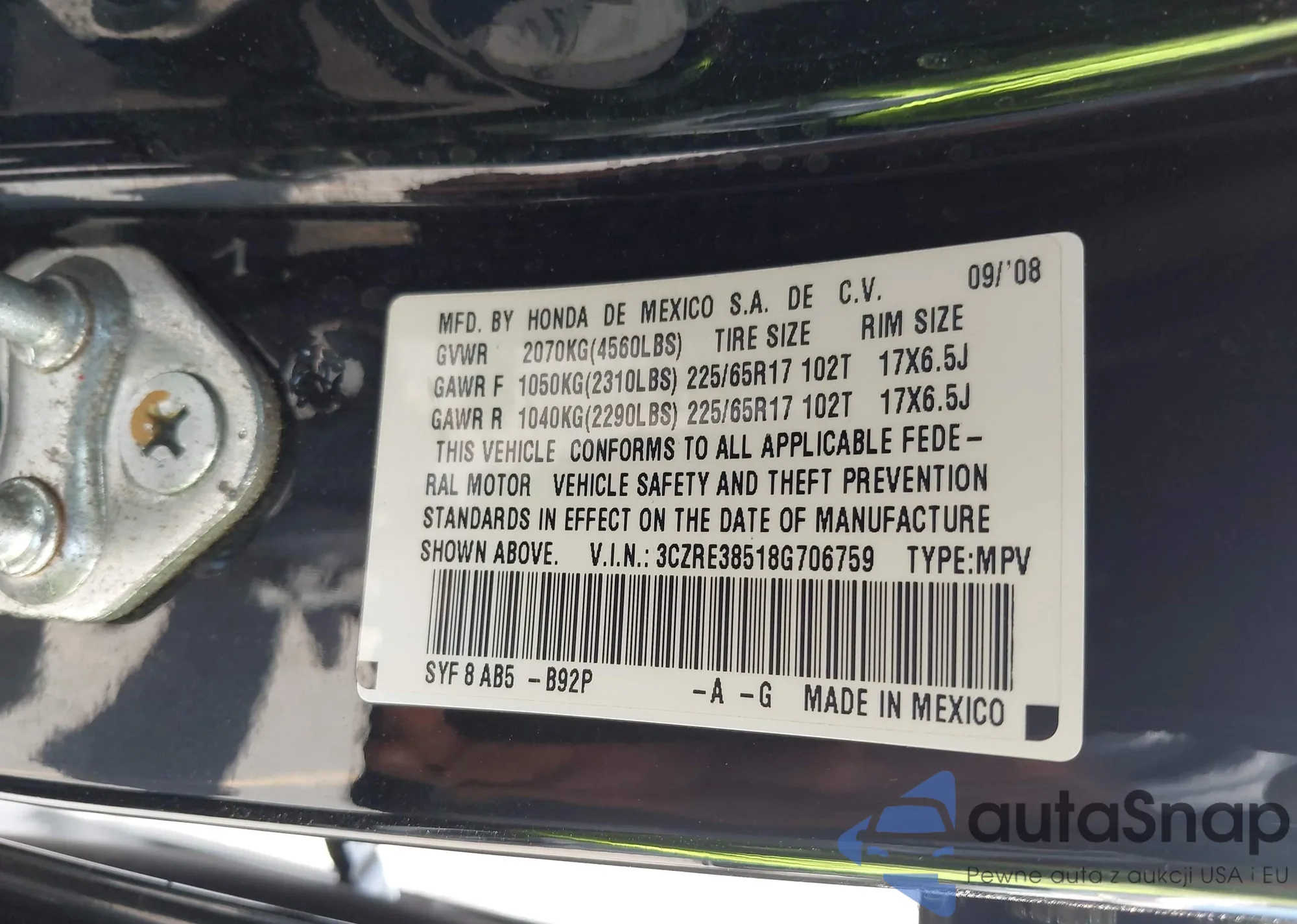 LOT: 43089261 VIN: 3CZRE38518G706759