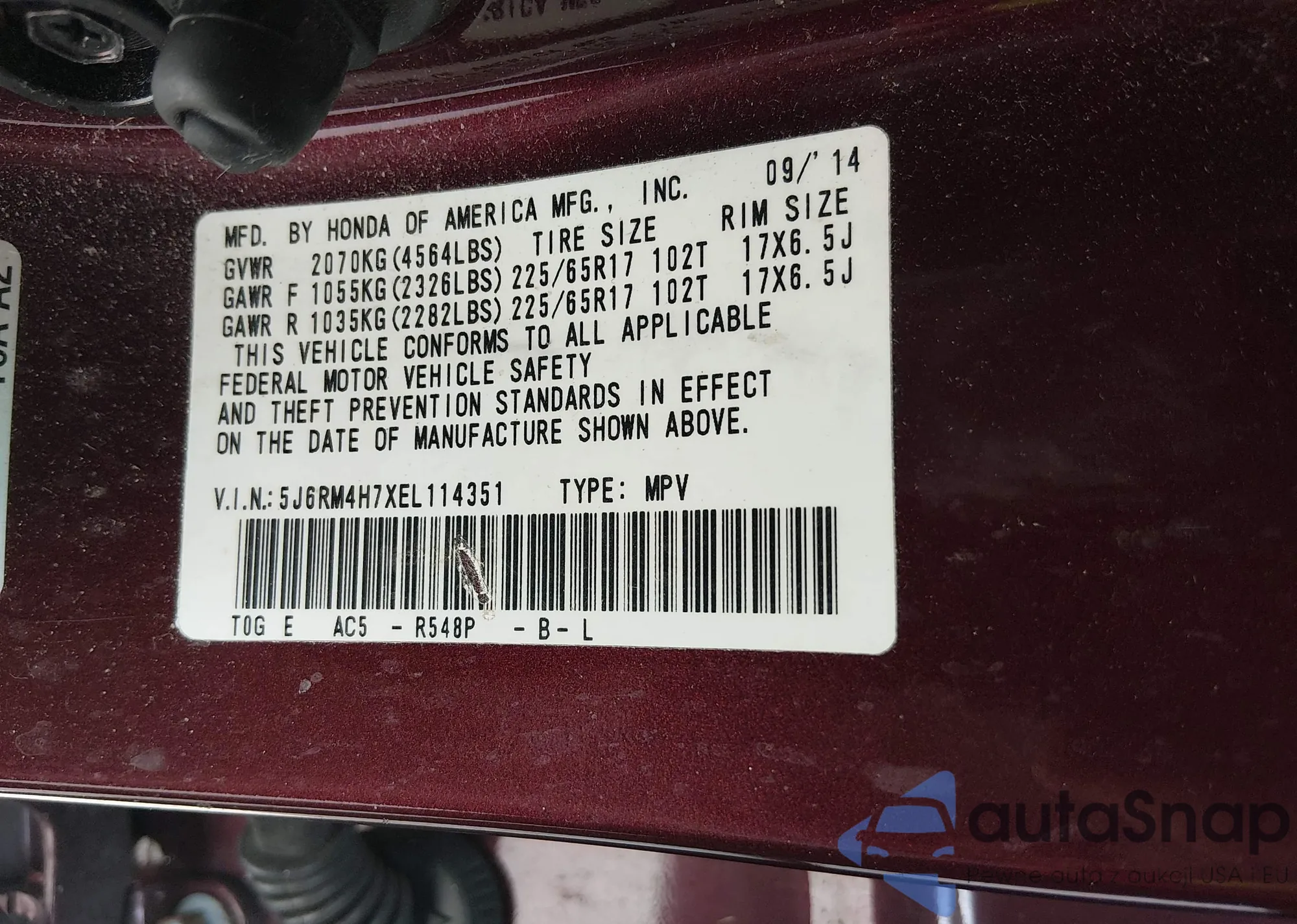 • VIN 5J6RM4H7XEL114351