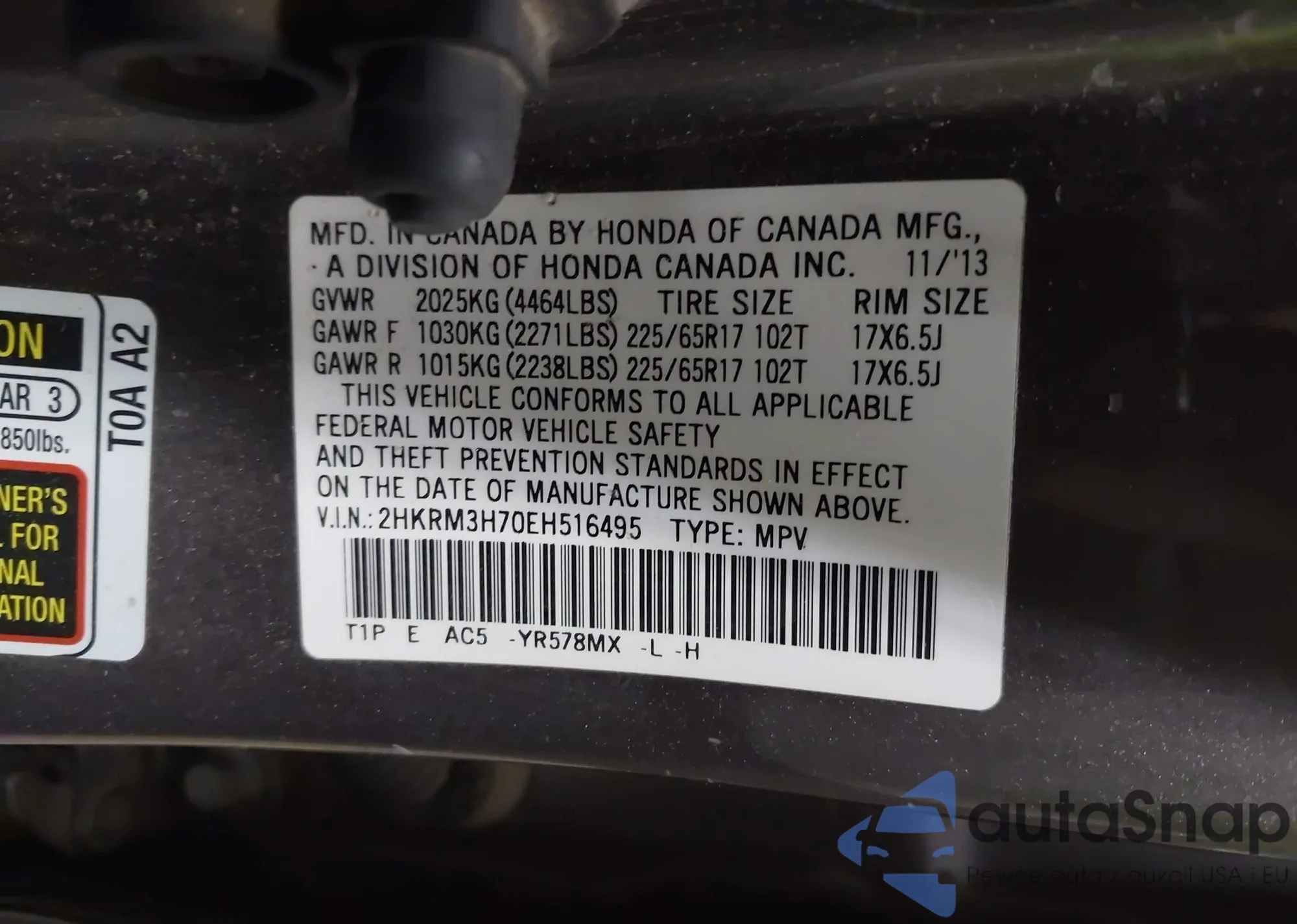 • VIN 2HKRM3H70EH516495