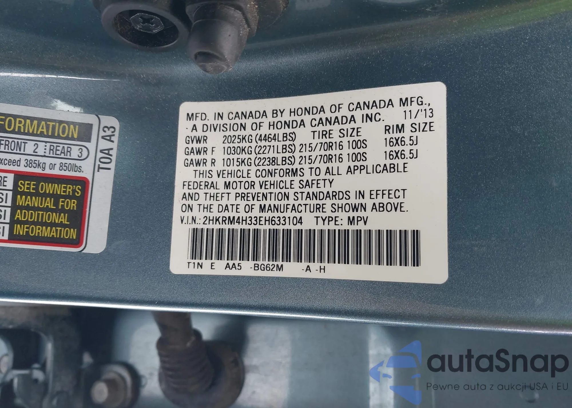 • VIN 2HKRM4H33EH633104