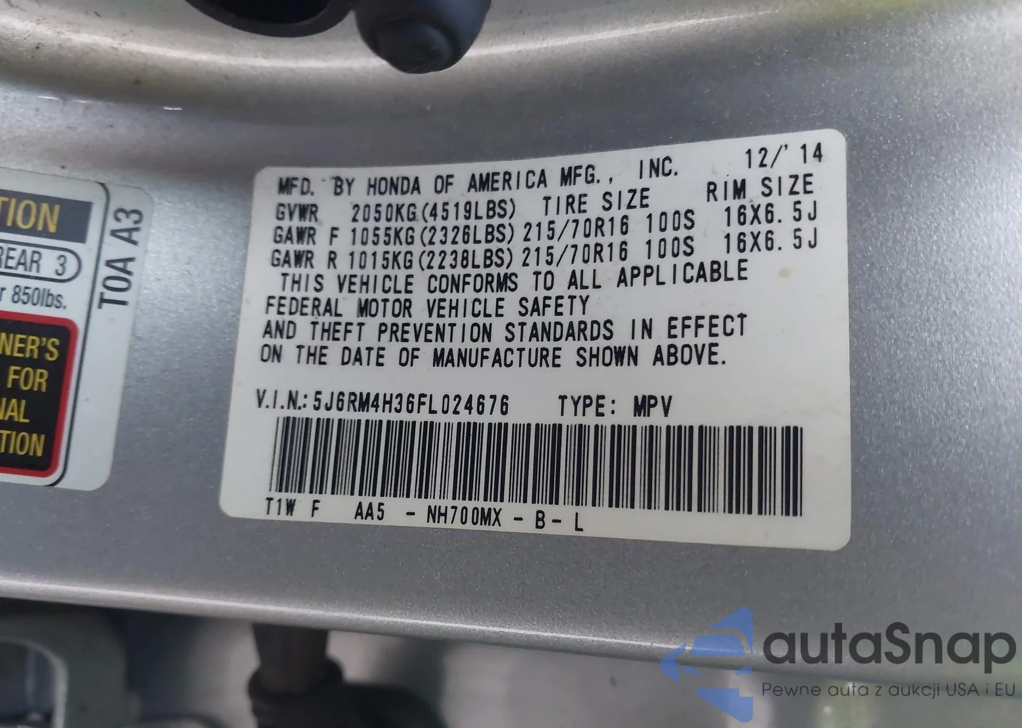 • VIN 5J6RM4H36FL024676