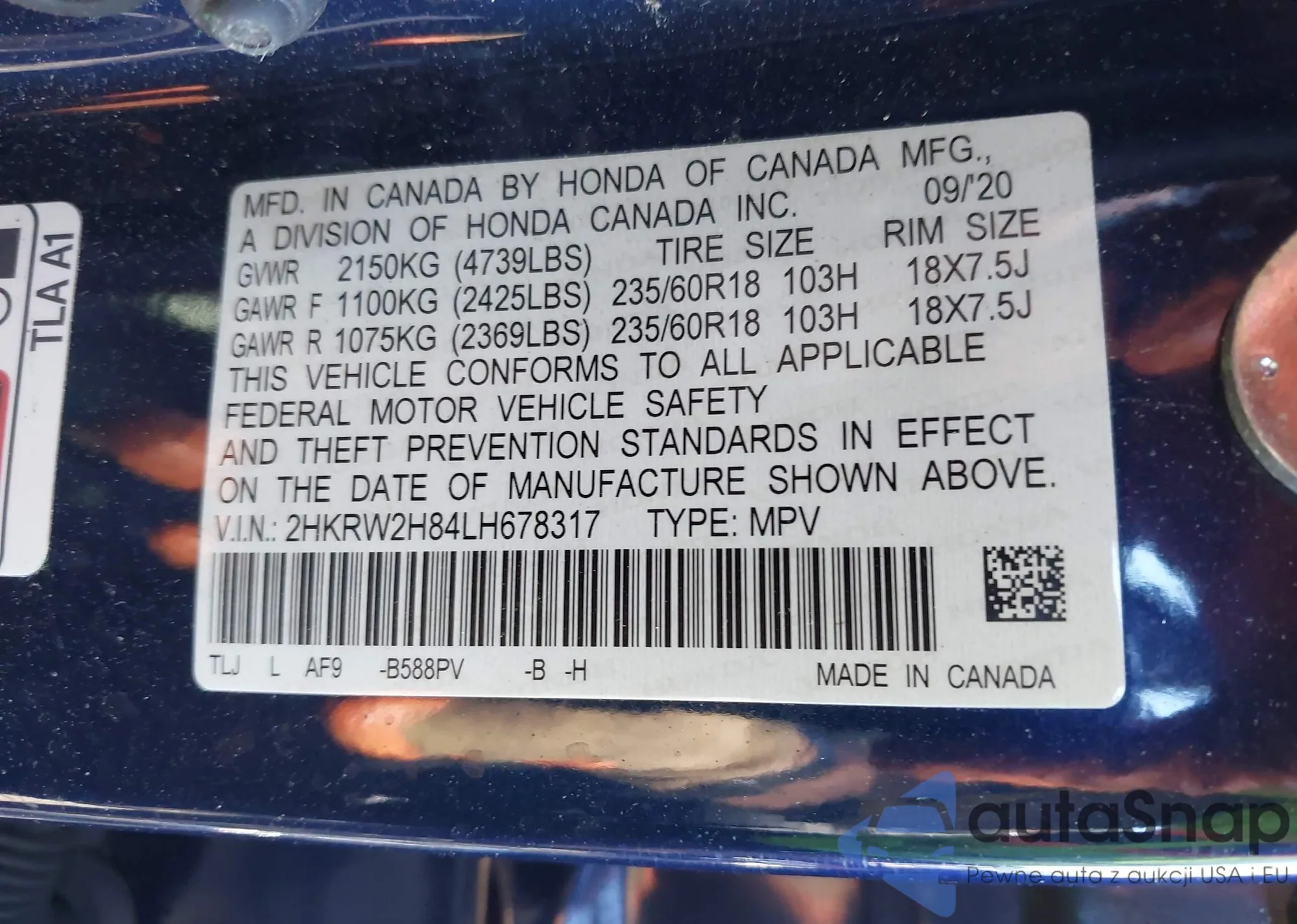 • VIN 2HKRW2H84LH678317