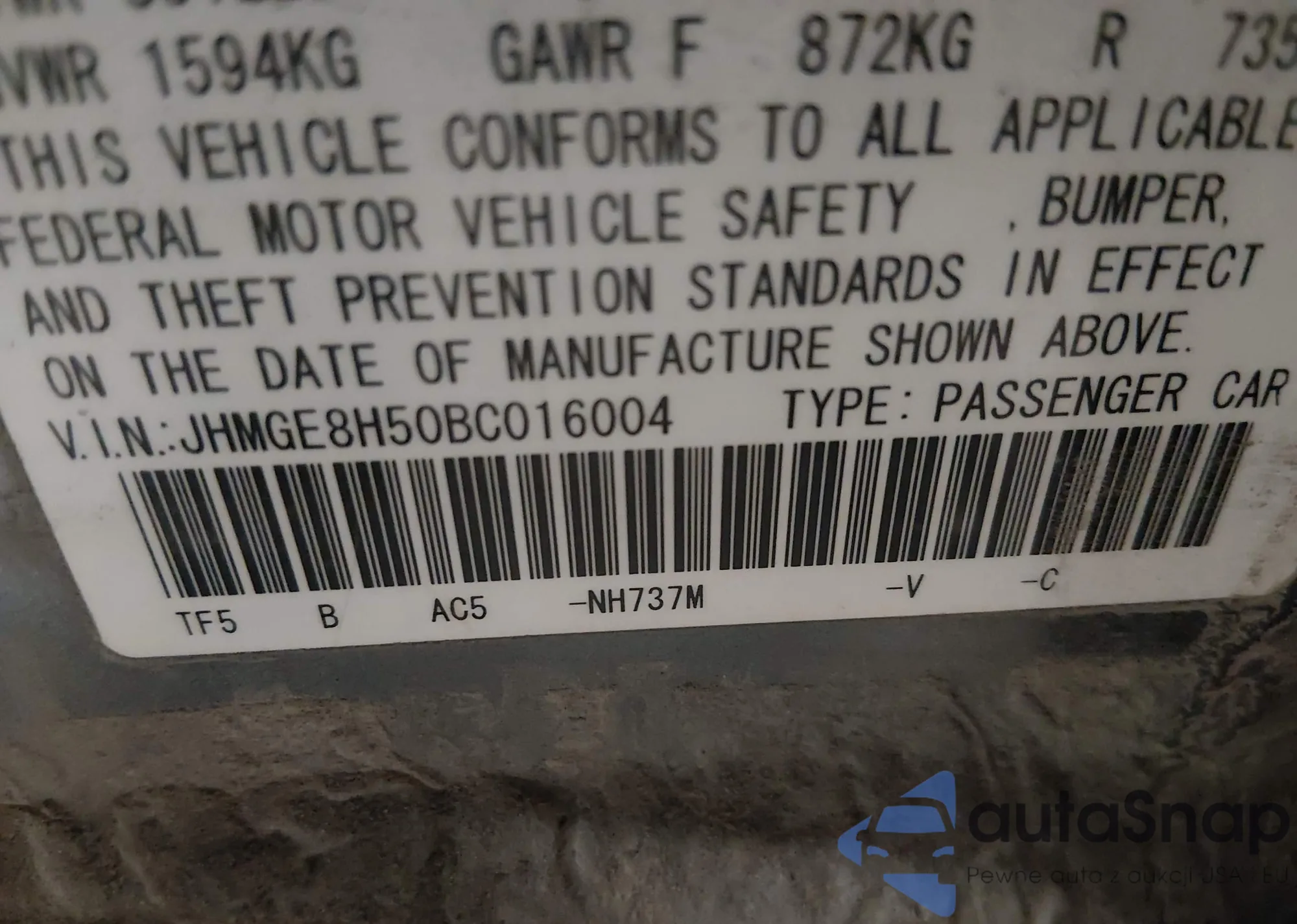 • VIN JHMGE8H50BC016004