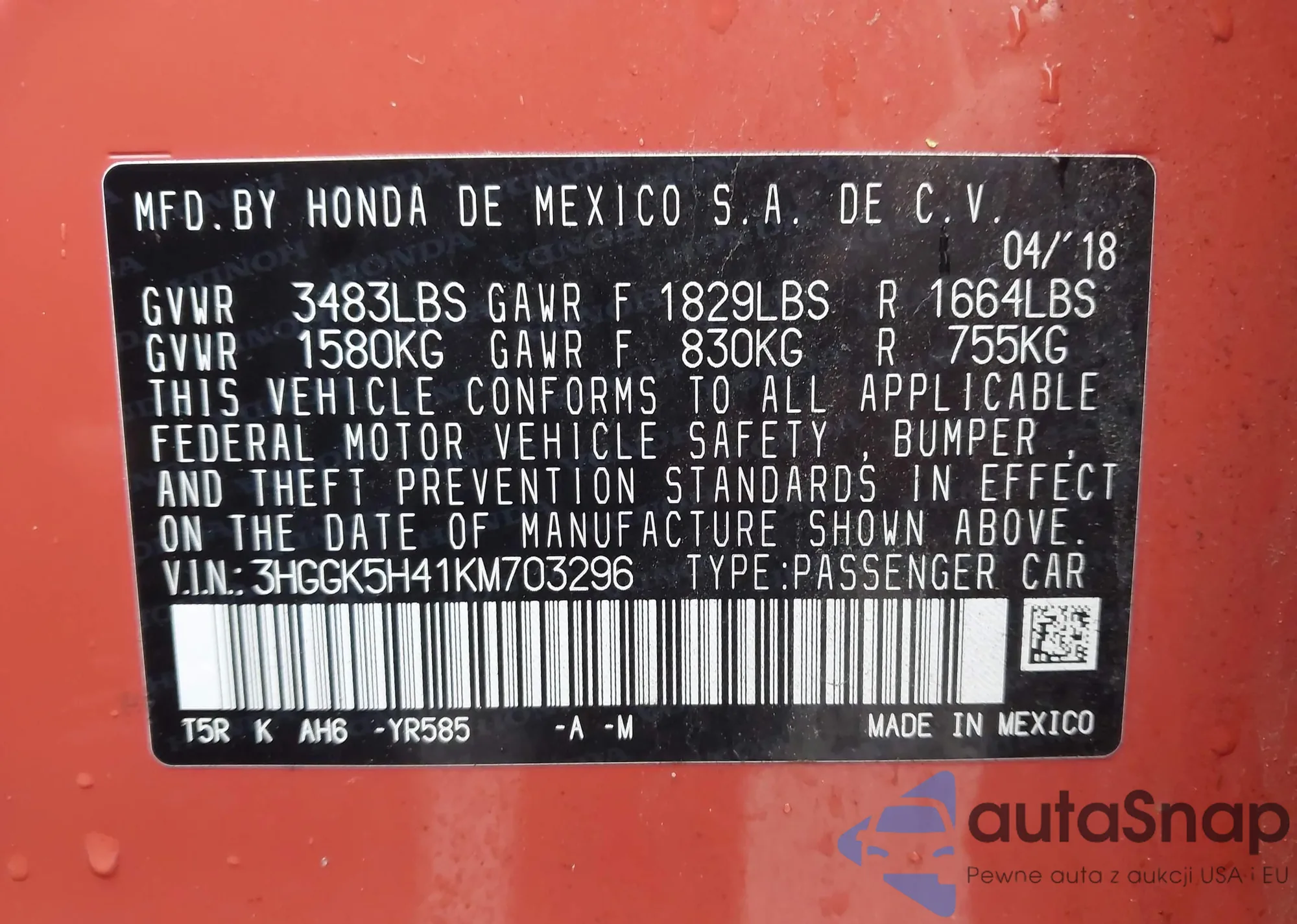 • VIN 3HGGK5H85JM728476