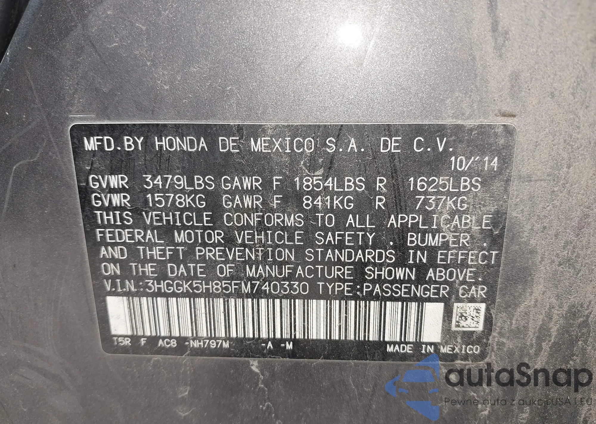 • VIN 3HGGK5H85FM740330
