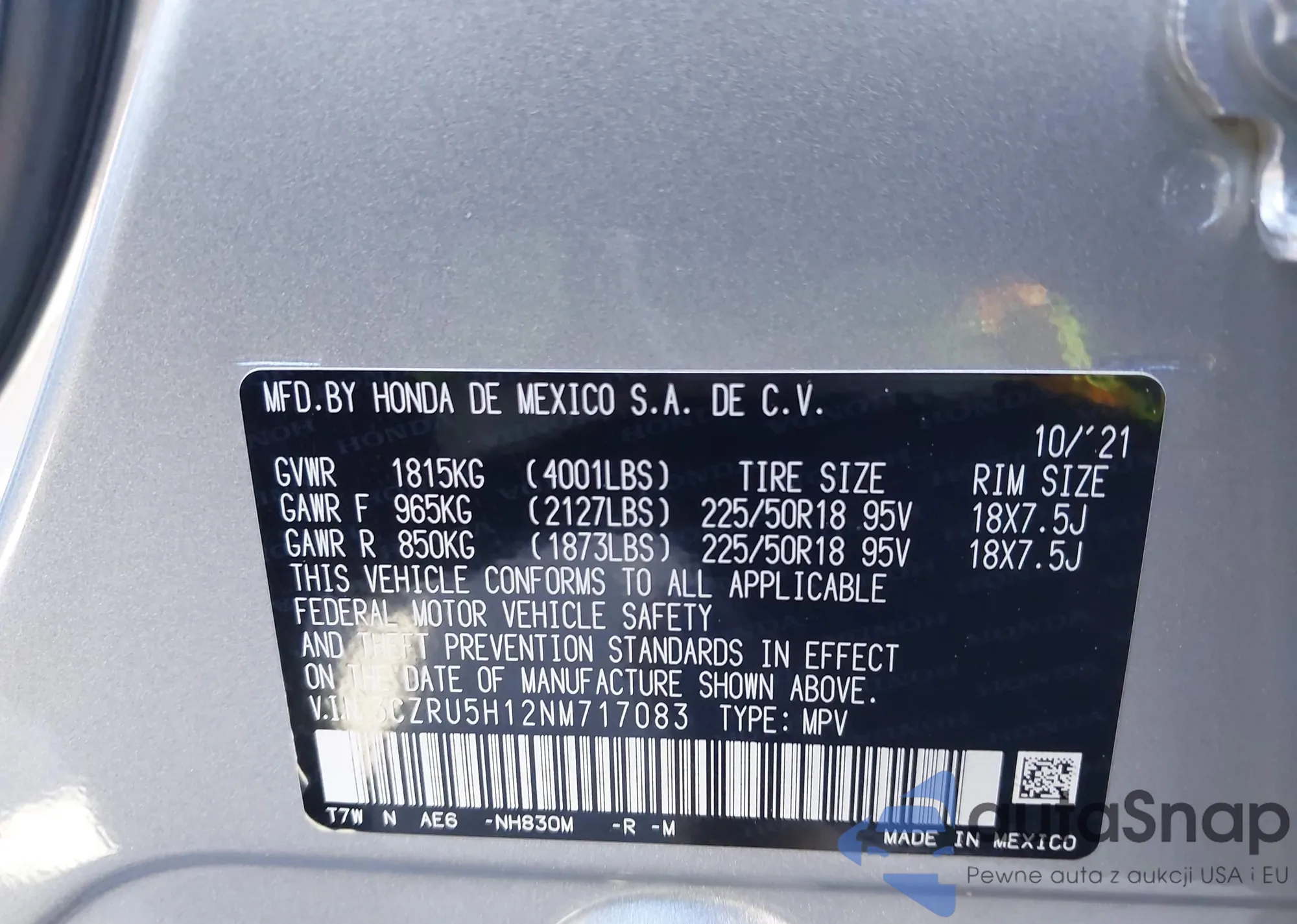 • VIN 3CZRU5H12NM717083