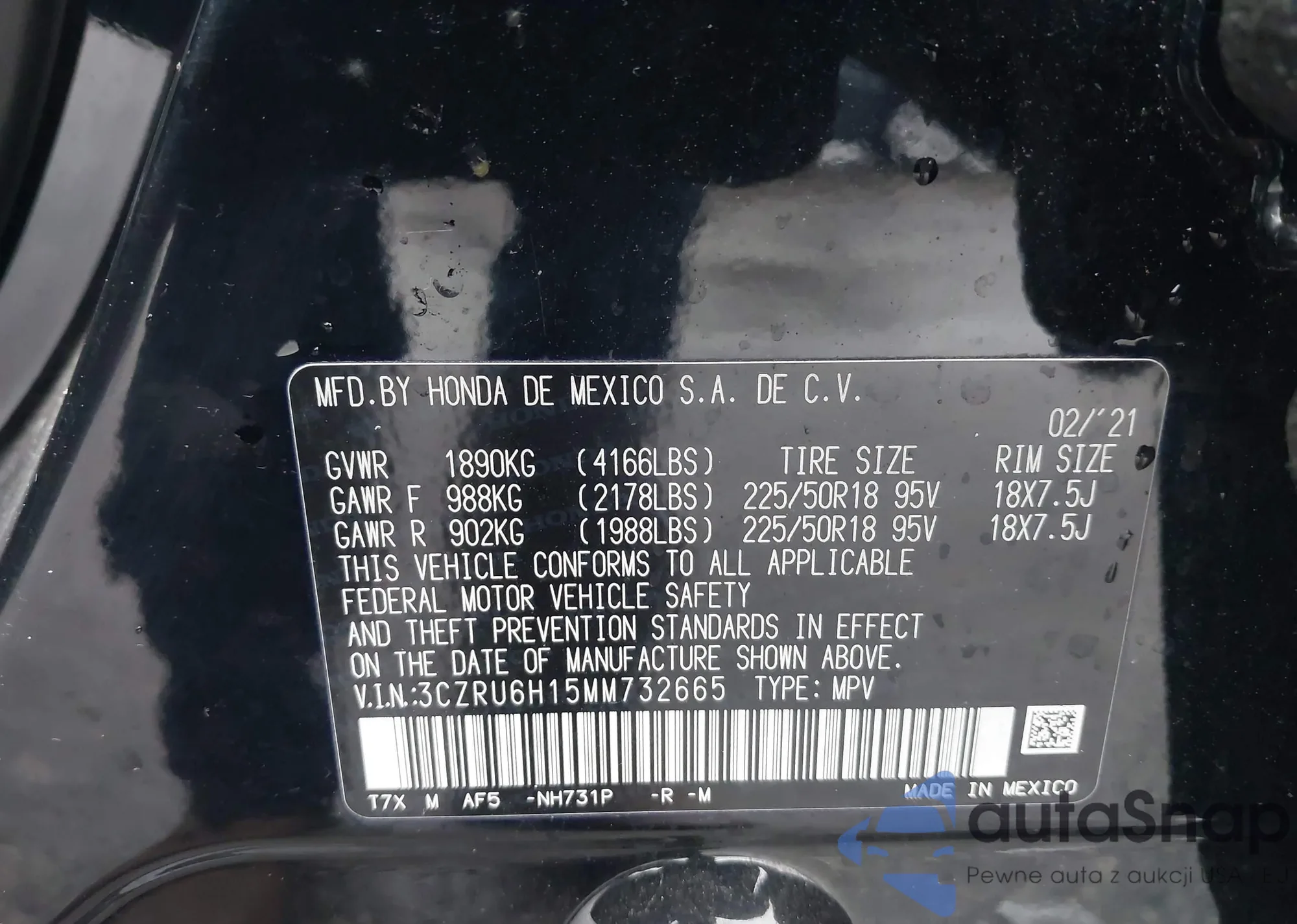 • VIN 3CZRU6H15MM732665