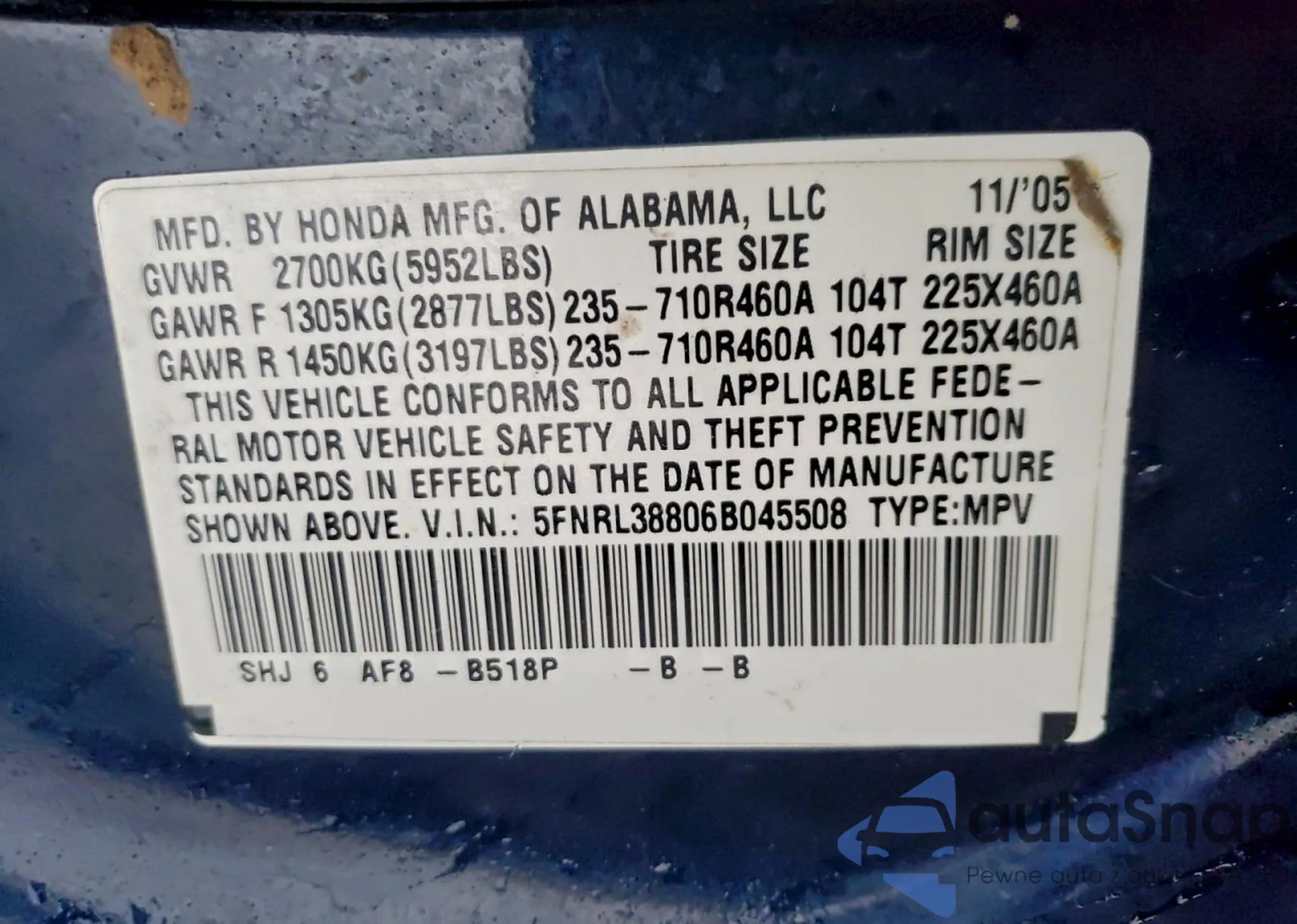 • VIN 5FNRL38806B045508