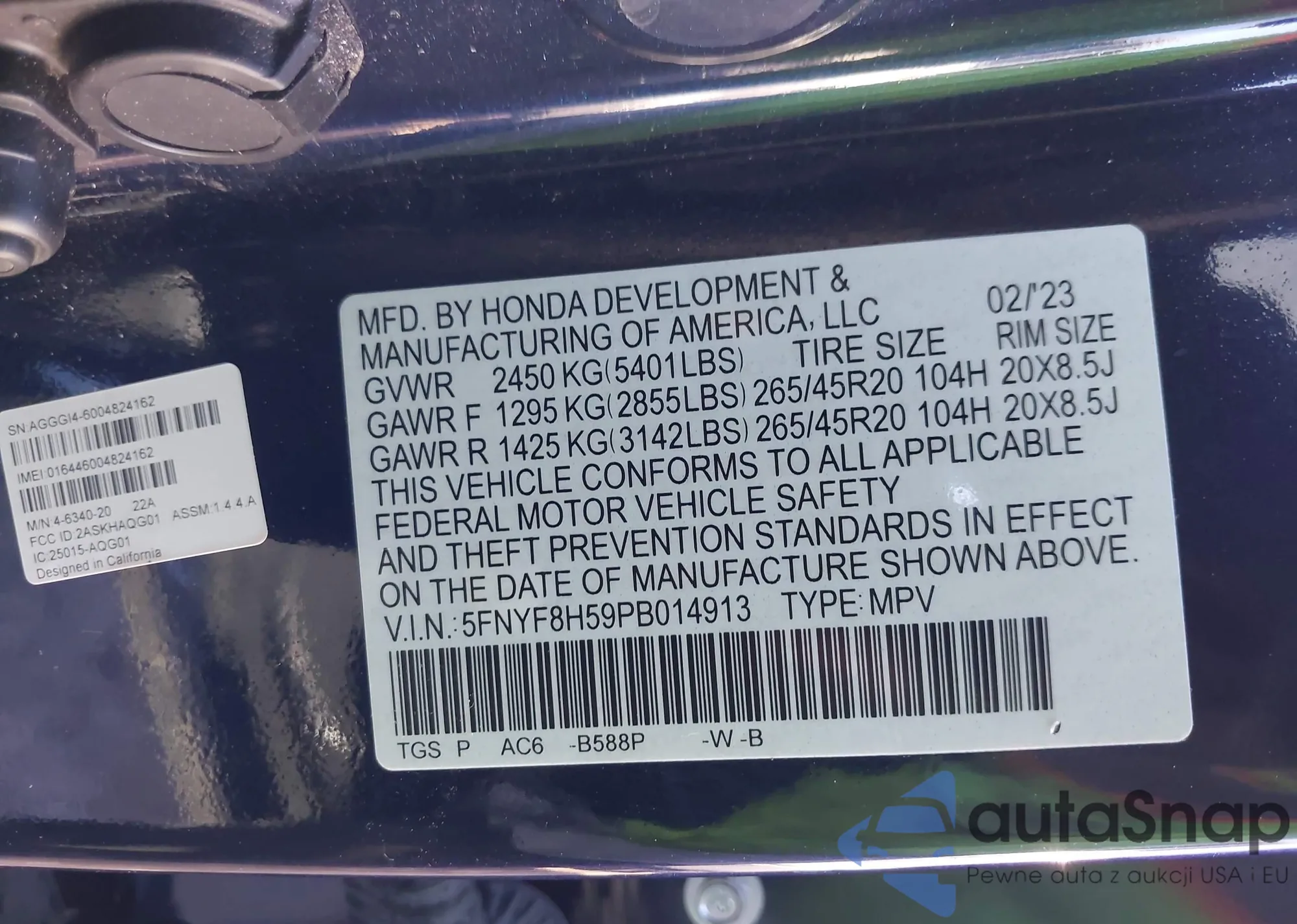 • VIN 5FNYF8H59PB014913