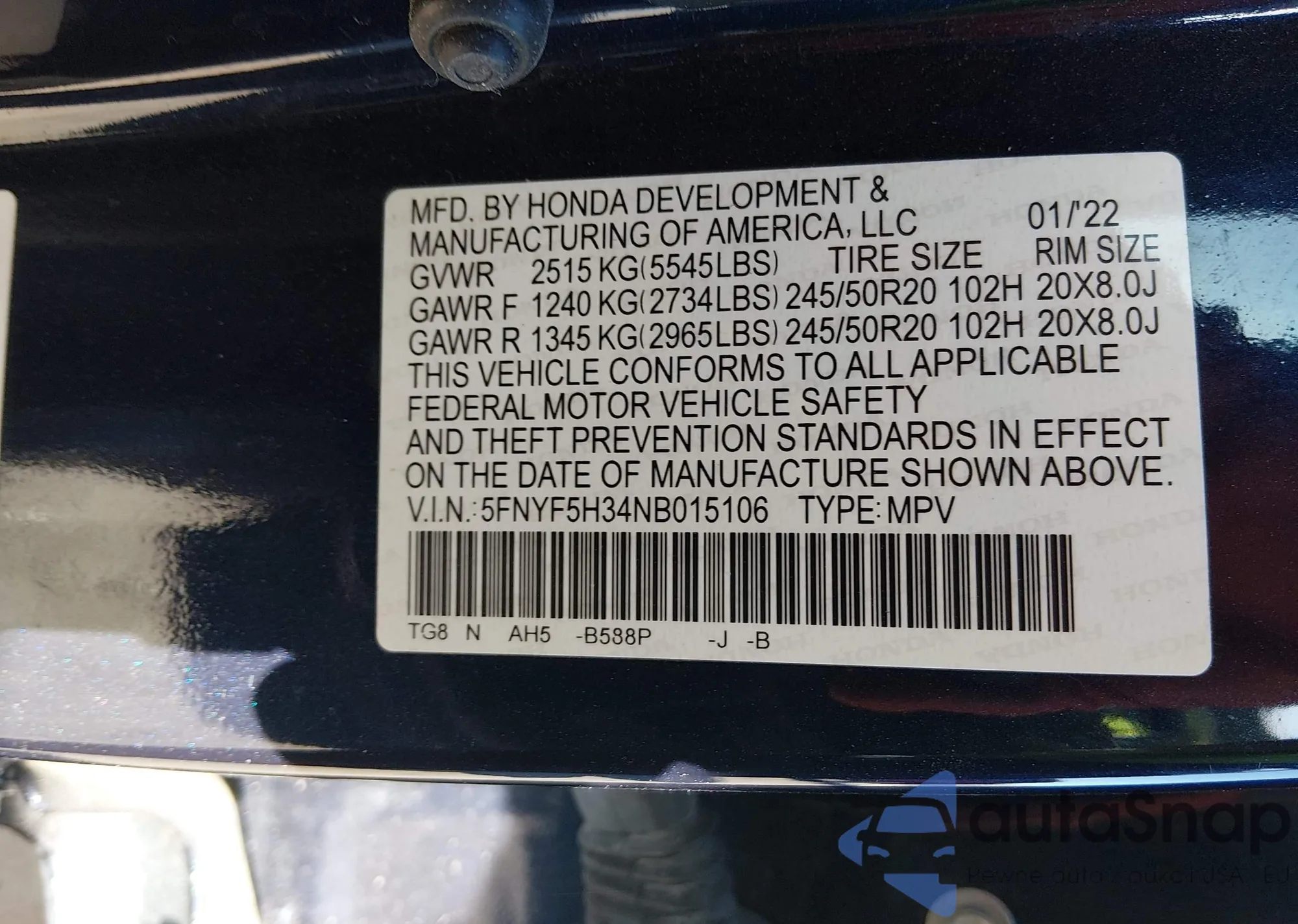 • VIN 5FNYF5H34NB015106