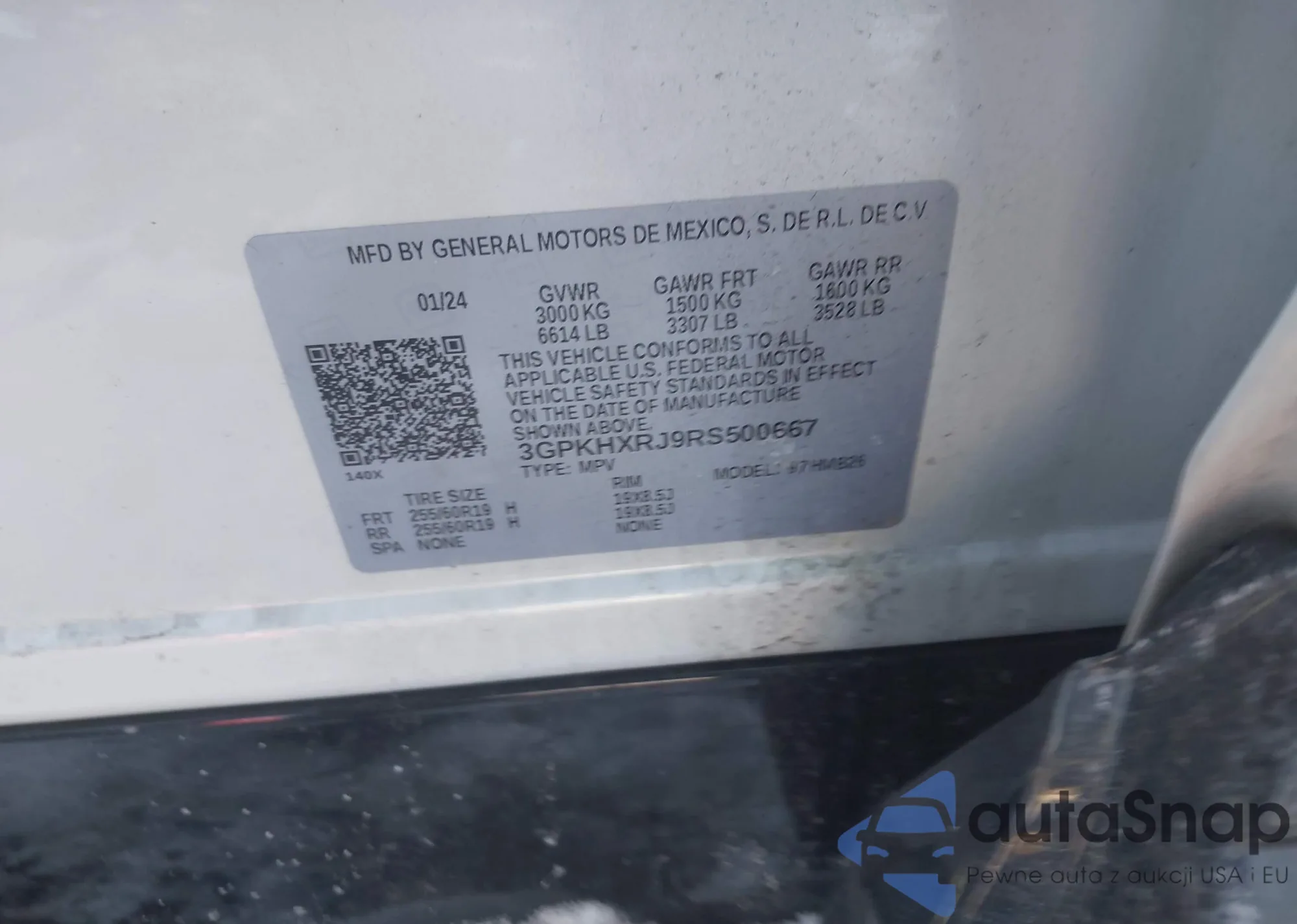 • VIN 3GPKHXRJ9RS500667
